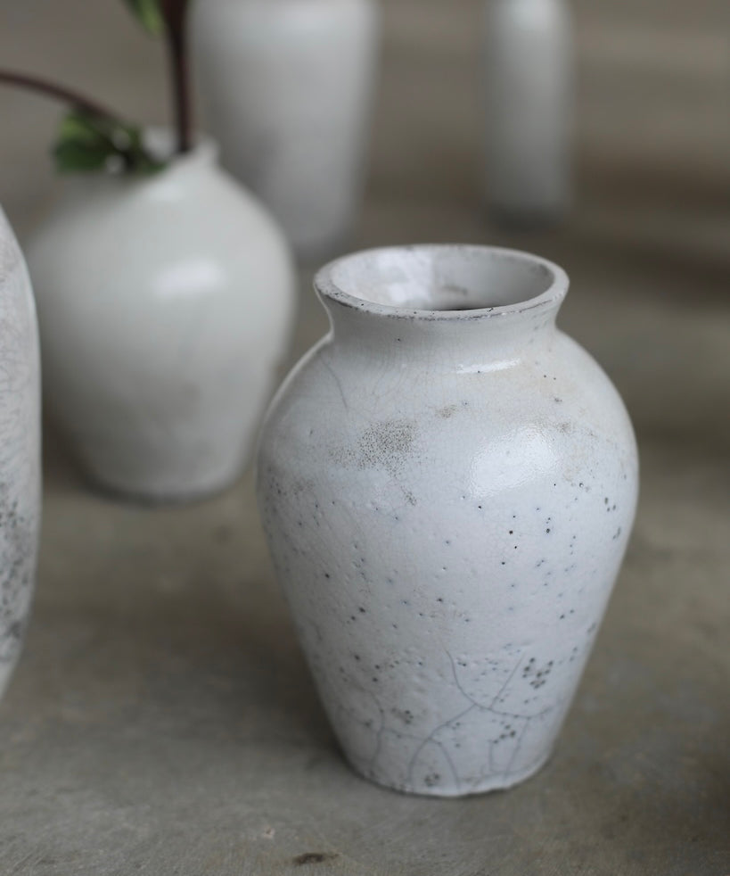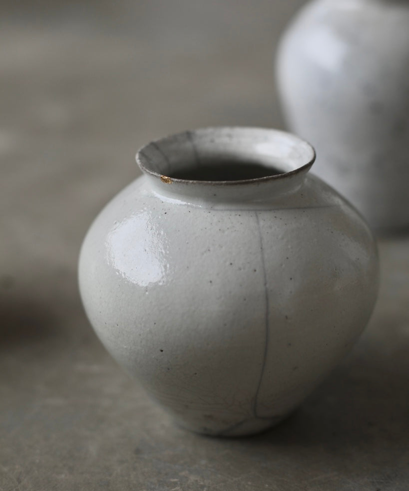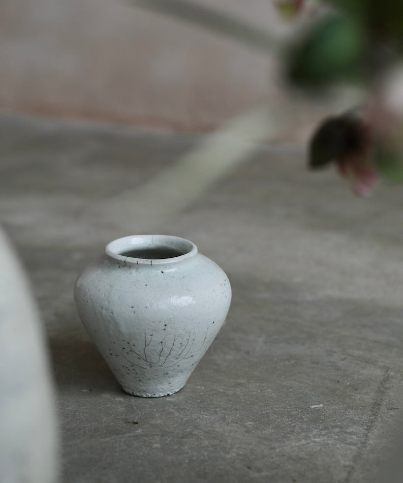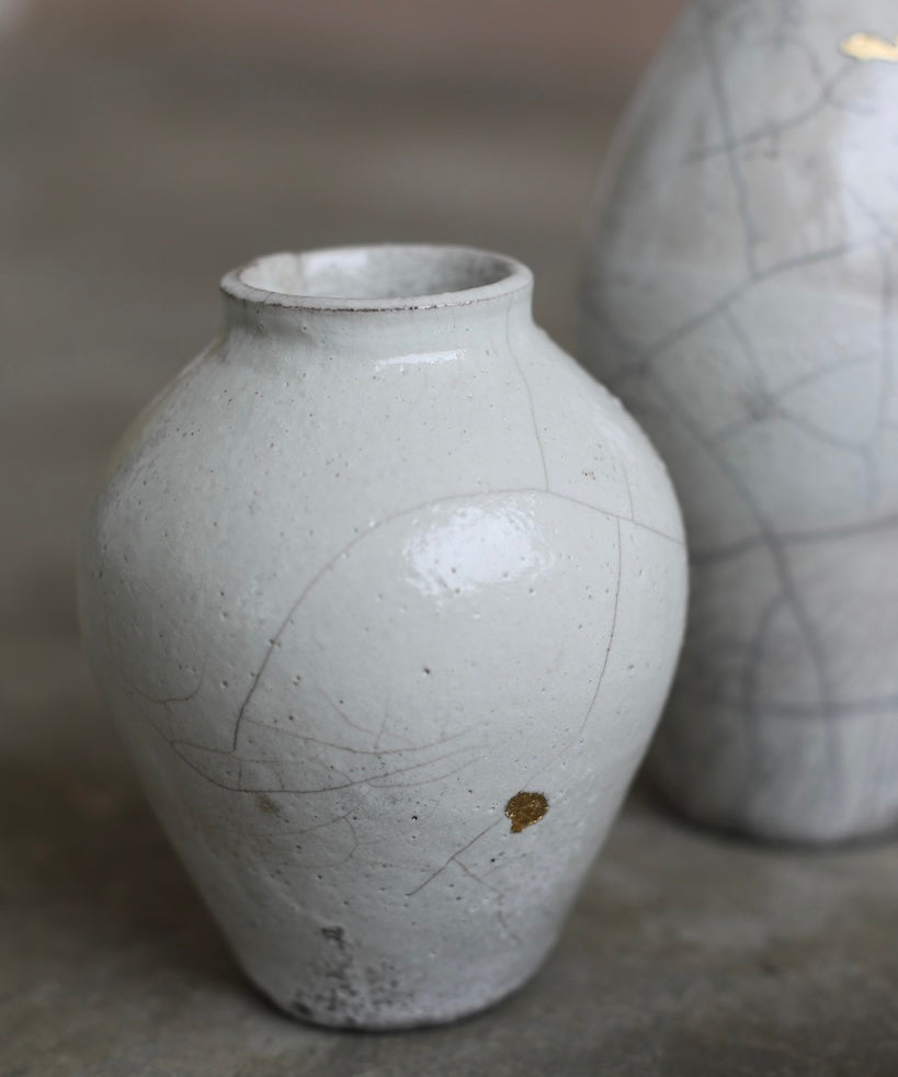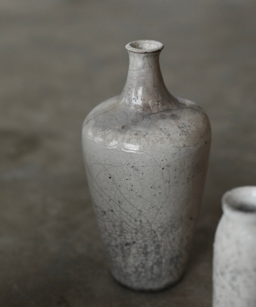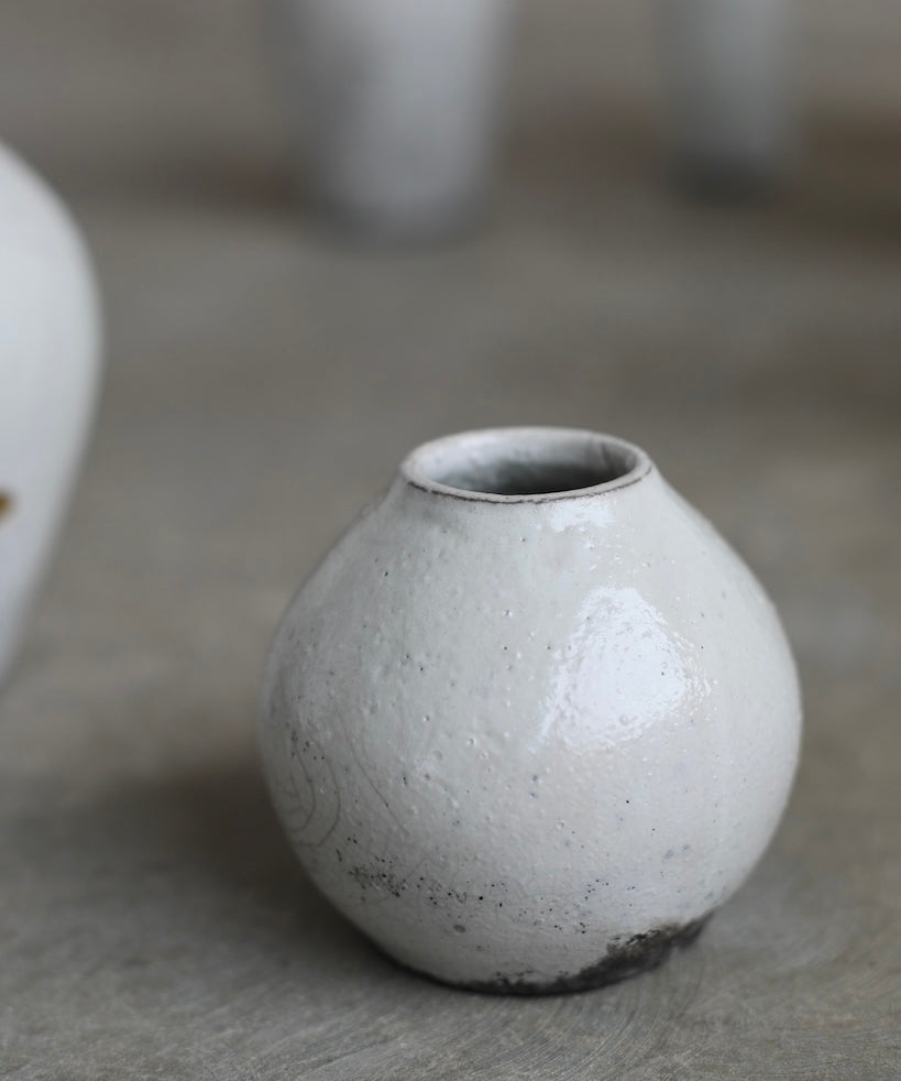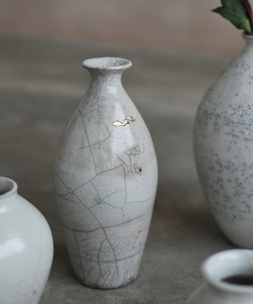 Rhona Frances is a ceramic artist based on the south coast of Cornwall, specialising in minimalist vessels with soft, feminine forms. Working with stoneware clay, Frances builds each piece slowly using the hand-building technique of coiling, allowing form to evolve through quiet repetition. Central to her practice, and in contrast to the calm, measured construction of her vessels, is the raku firing process; an inherently volatile and unpredictable method. The resulting crackle surfaces act as delicate records of fire, smoke, and transformation. The philosophy of non-attachment is fundamental to Frances’s work; some vessels are lost during firing, and this acceptance of fragility has become an integral part of her artistic outlook.