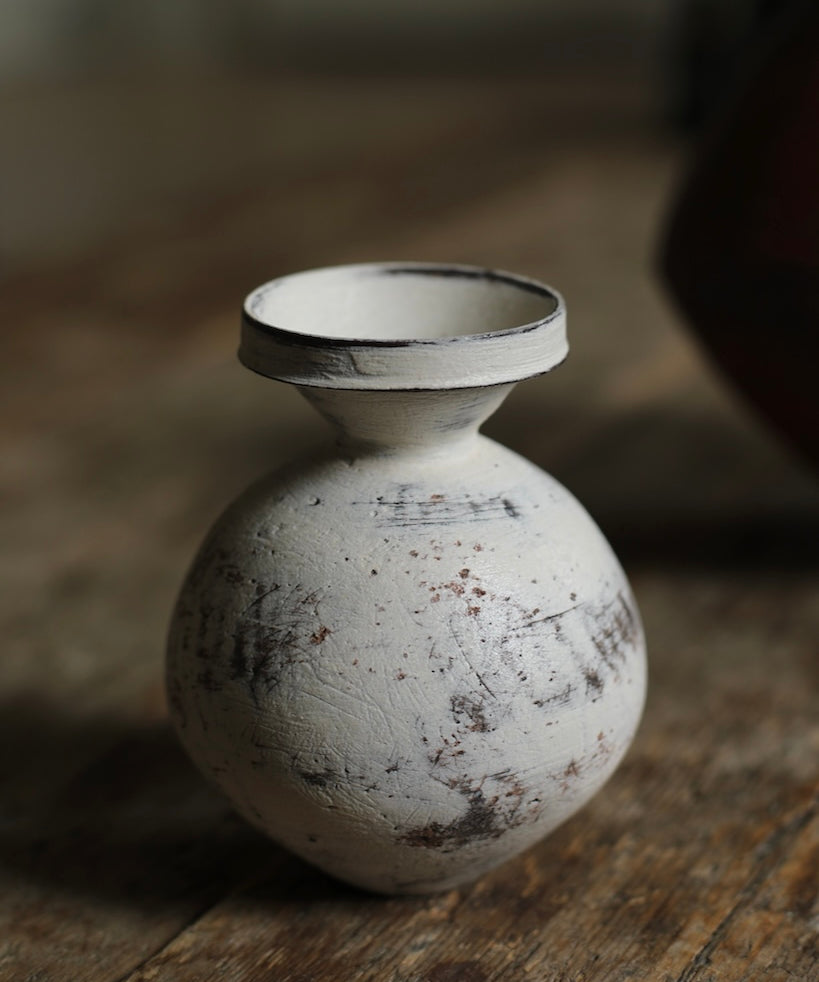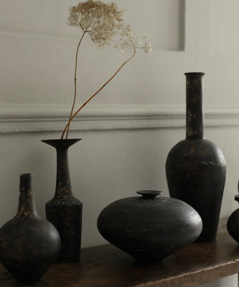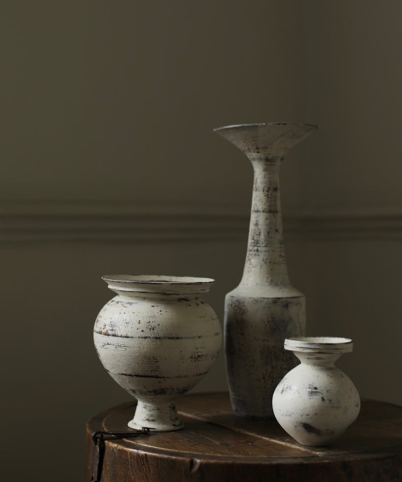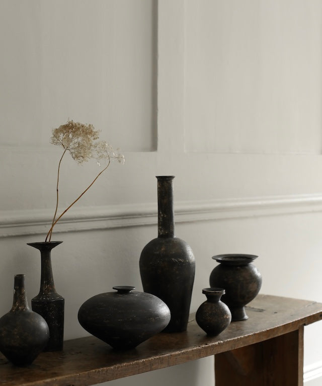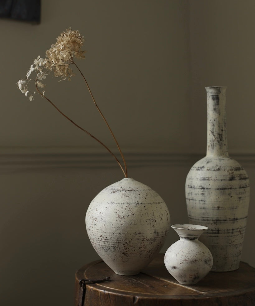 Award winning Danish ceramicist Louise Egedal's work is Japanese Wabi Sabi inspired. Her wheel thrown and hand sculpted stoneware vases and vessels are both sculptural and functional. Some surfaces are sculpted and others are created using the Japanese Hakeme technique for brushwork. Muted tones and simple shapes reflect the Danish influence.