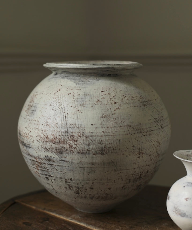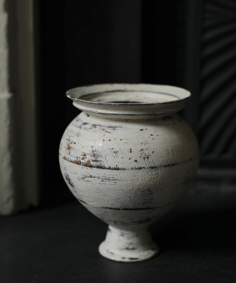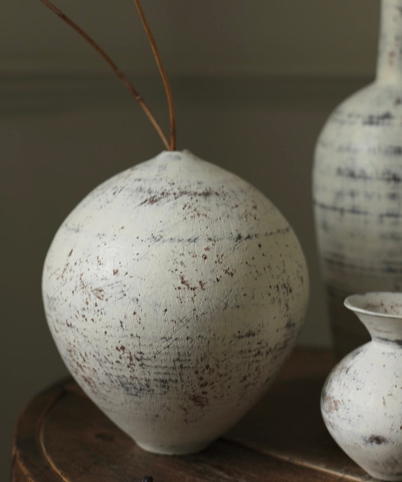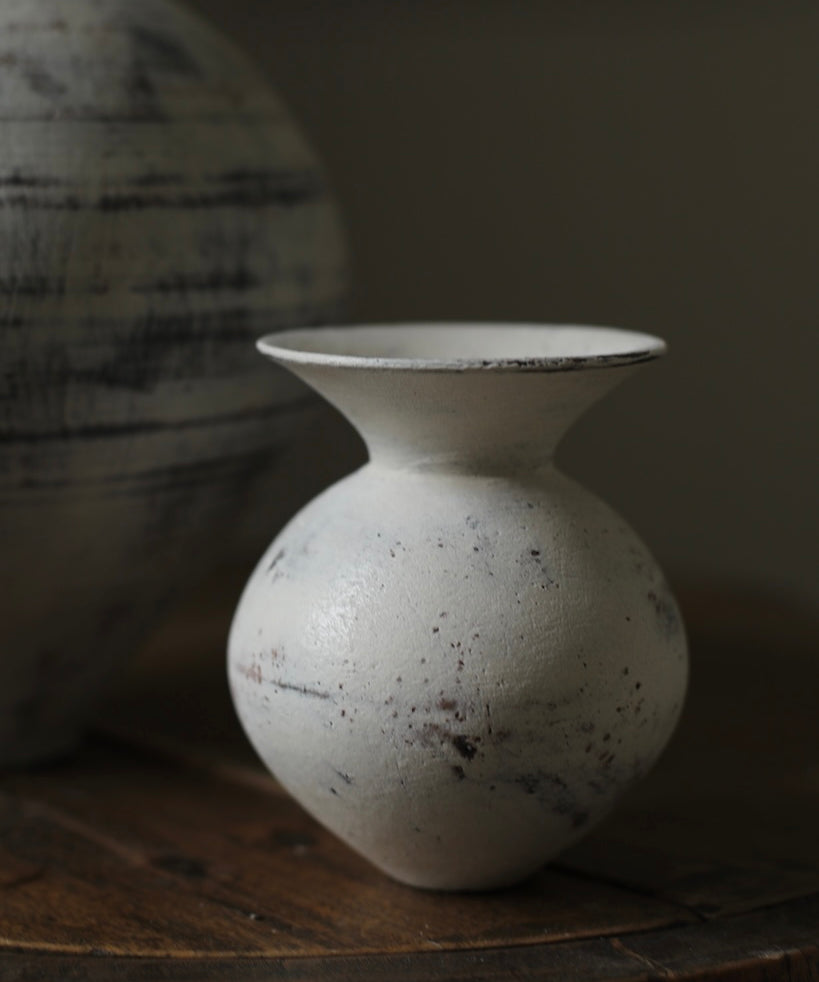 Award winning Danish ceramicist Louise Egedal's work is Japanese Wabi Sabi inspired. Her wheel thrown and hand sculpted stoneware vases and vessels are both sculptural and functional. Some surfaces are sculpted and others are created using the Japanese Hakeme technique for brushwork. Muted tones and simple shapes reflect the Danish influence.