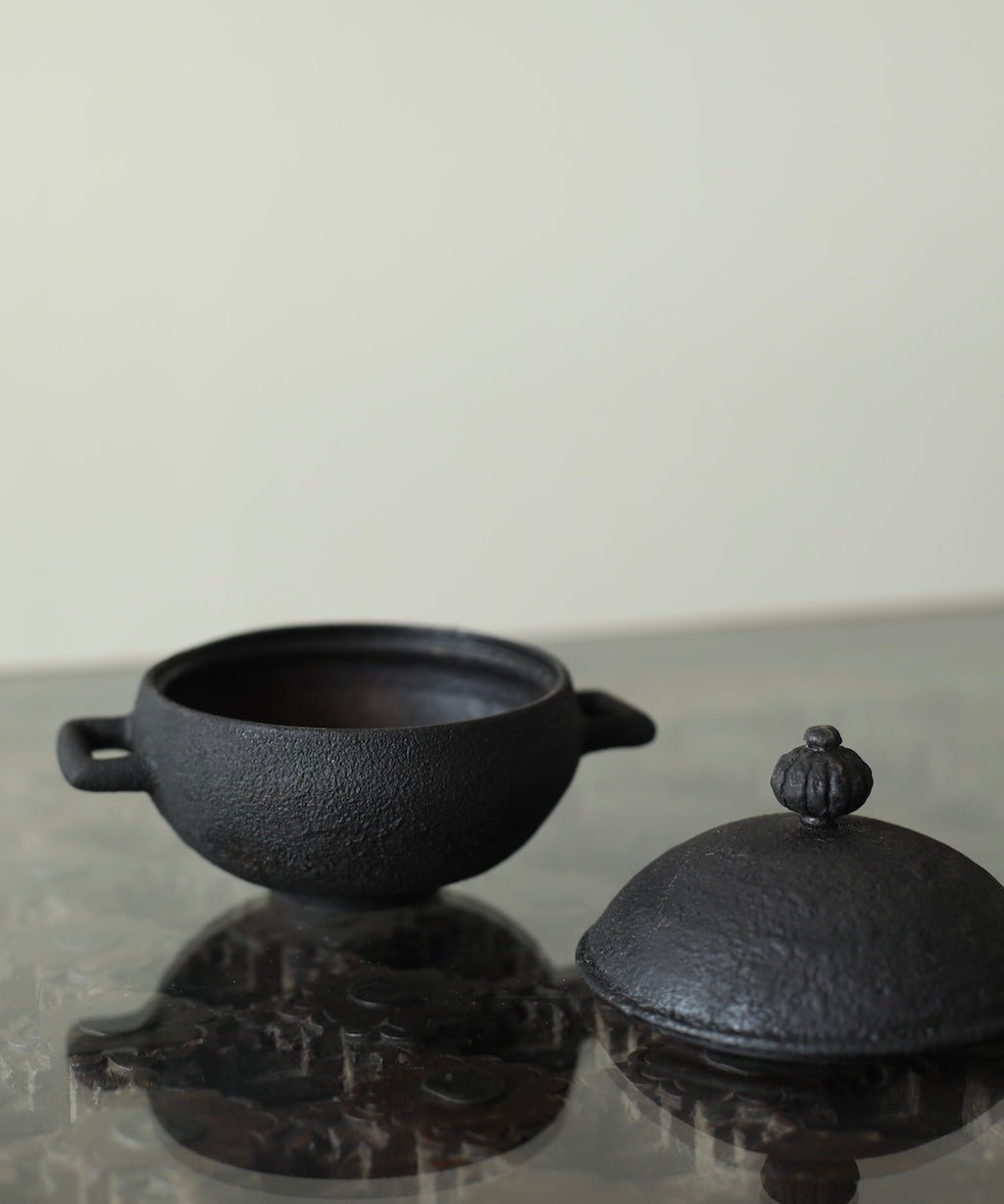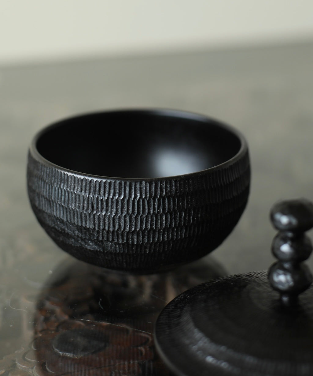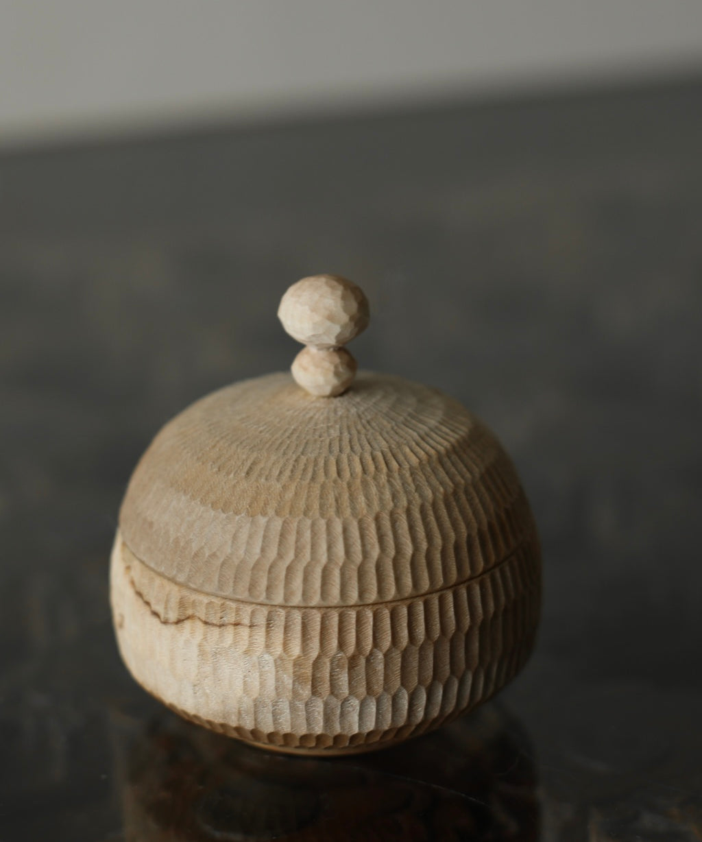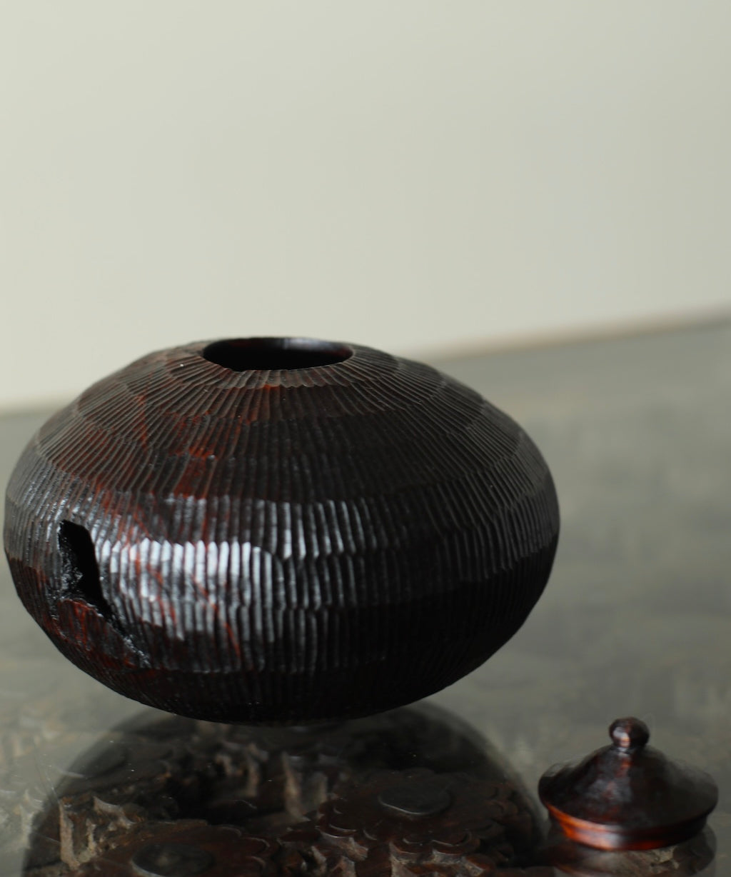 Takahashi McGil’s pieces are made from hardwoods sourced locally and through a combination of Japanese and Western techniques, traditions and tools. Originally, their pieces were intended solely for personal use, but their company was happily formed in 2016. Their creations are made through a collaborative process, with Mark woodturning and Kaori chiselling. Takahashi McGil’s production expanded to include lacquerware following a trip to Japan in 2018. They were introduced to urashi lacquering, which originates as tree sap, and makes objects waterproof as well as adding strength. The urashi lacquering process demands a meticulous approach, with the necessity of applying several layers of lacquer, as well as the perfect, humid temperature, for the lacquer to dry.