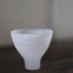 Much like water’s natural ability to transition from sharp currents to smooth ripples, this work merges the contrasting elements of sharp, yet gracefully smooth curves. Its opening, wide and circular, stands upon a smaller stem reminiscent of the depths of an ocean, though in a small and modest scale. The dimensions and unique form mirror the subtle variability found in water’s form.