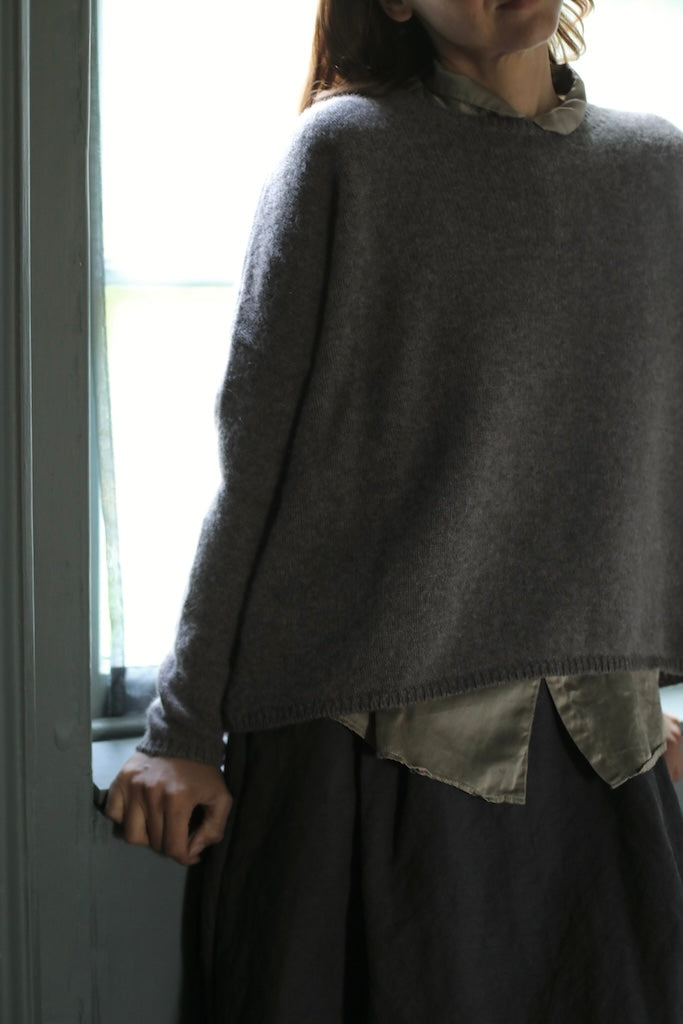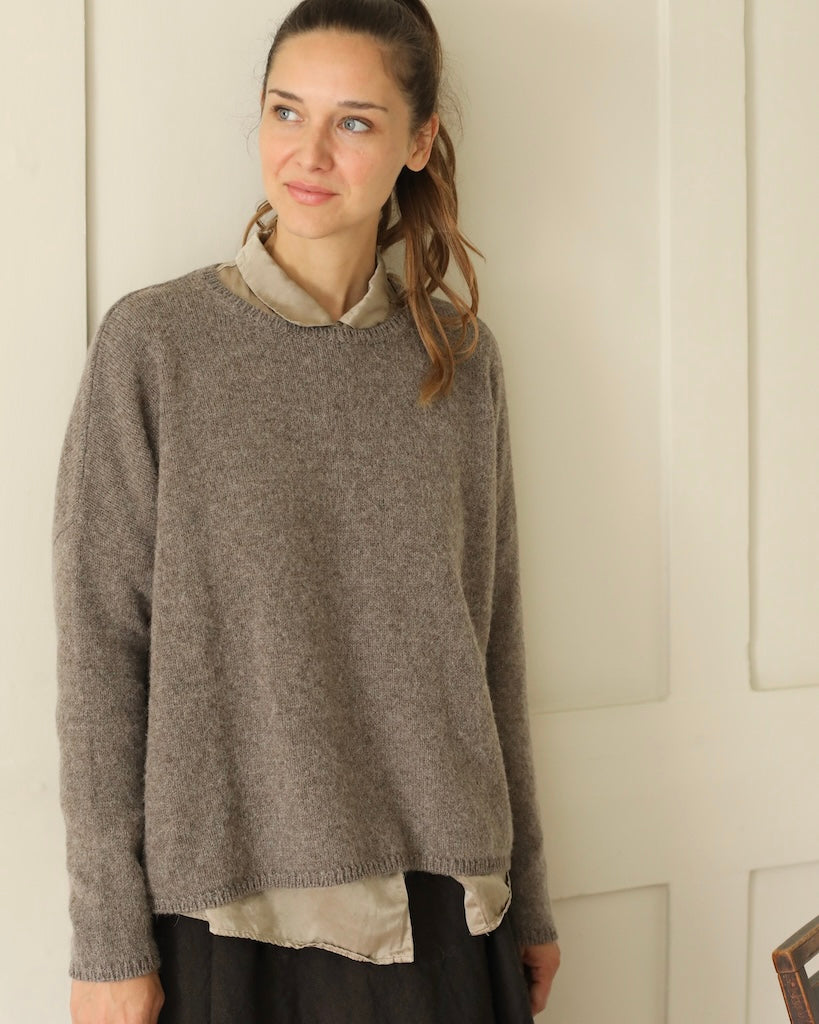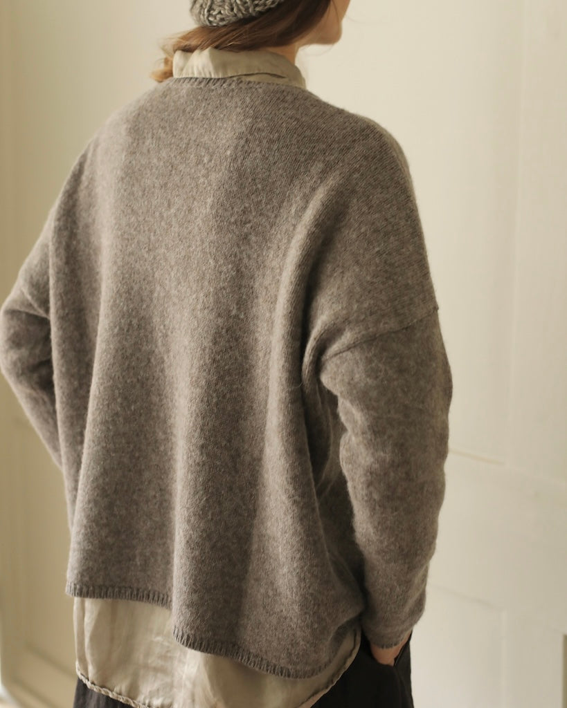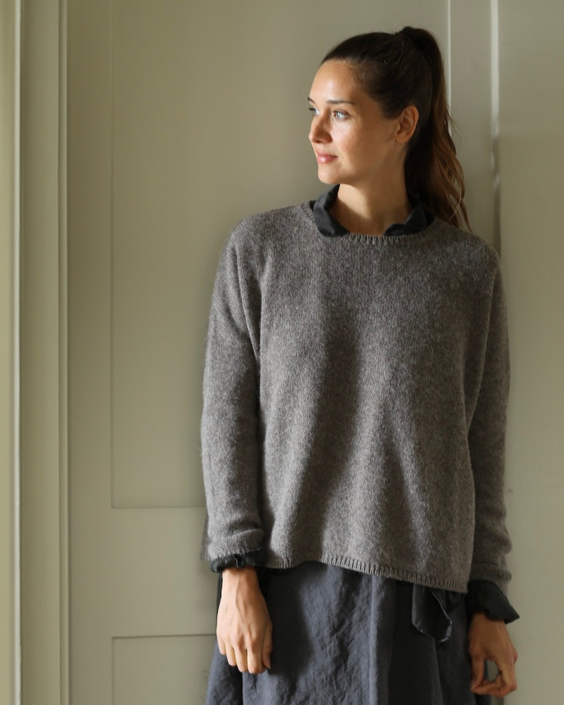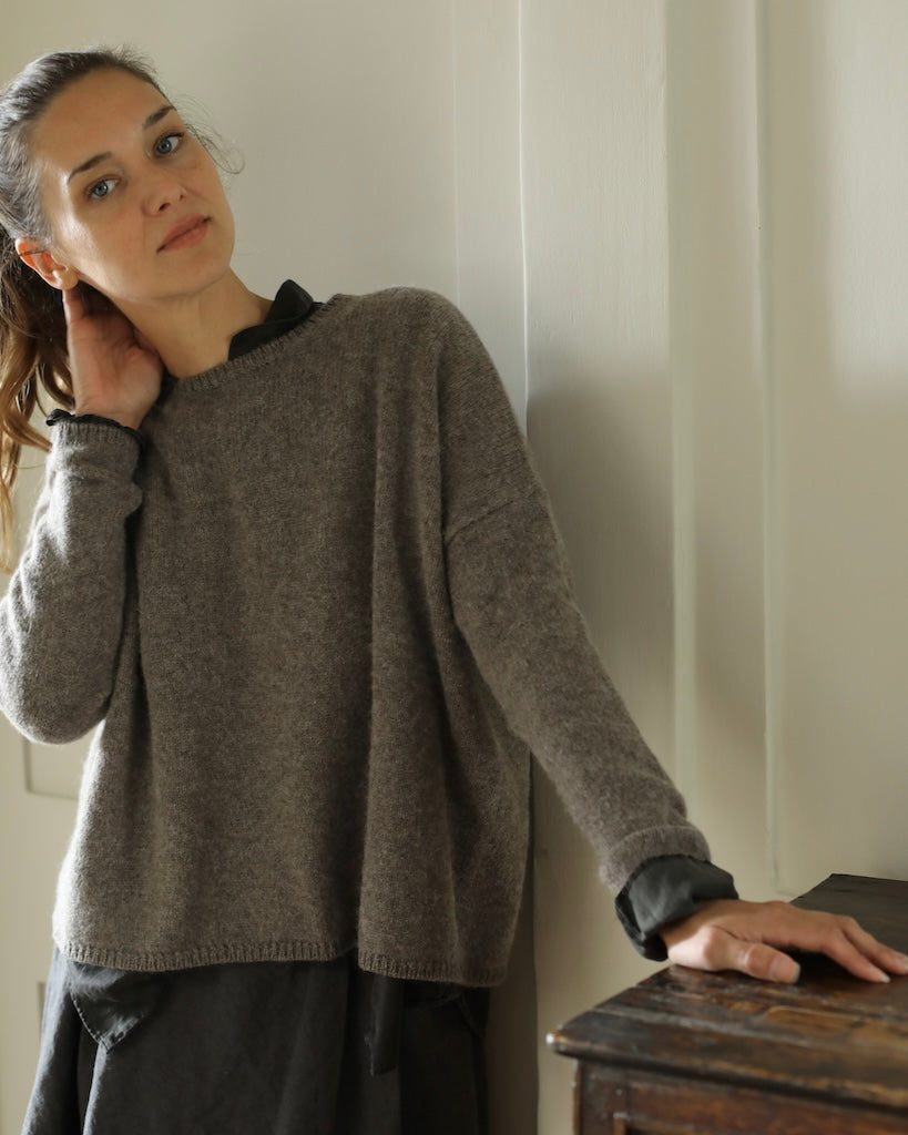 A timeless sweater in a beautifully soft, light yet warm, cashmere and alpaca blend, with a round neck, soft dropped shoulders, and a loose, flowing fit. Beautifully crafted with subtle fine edging, it balances elegance and ease, making it a versatile piece for any outfit.About the artist: