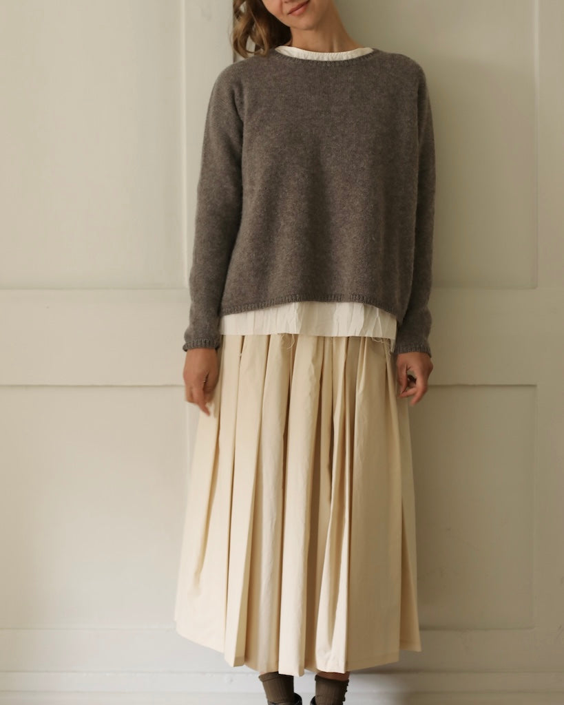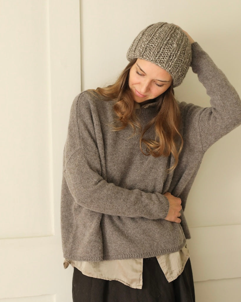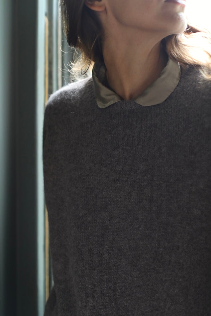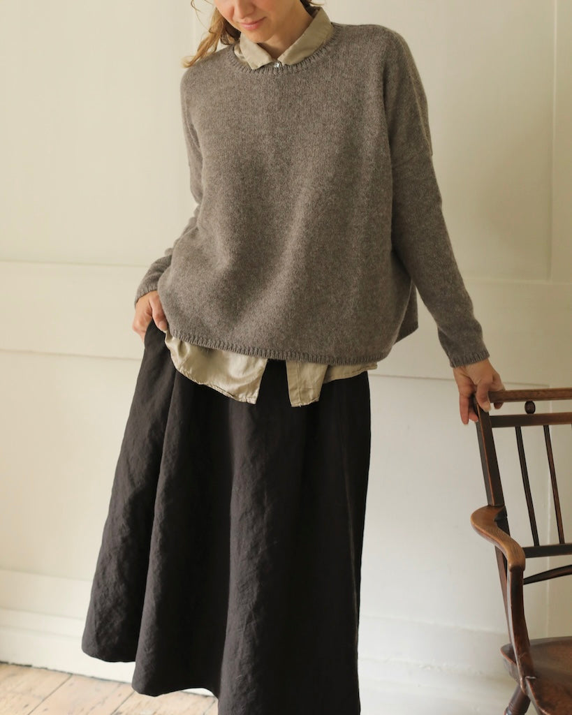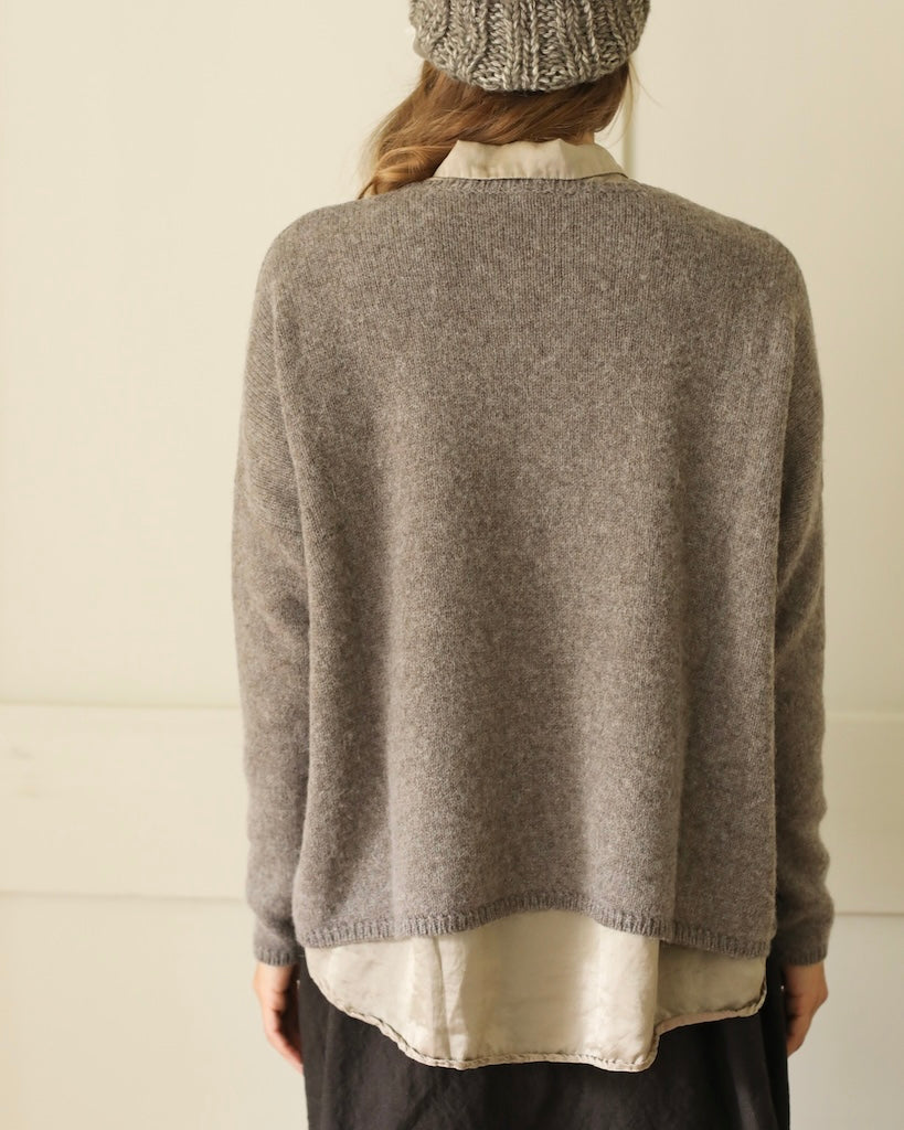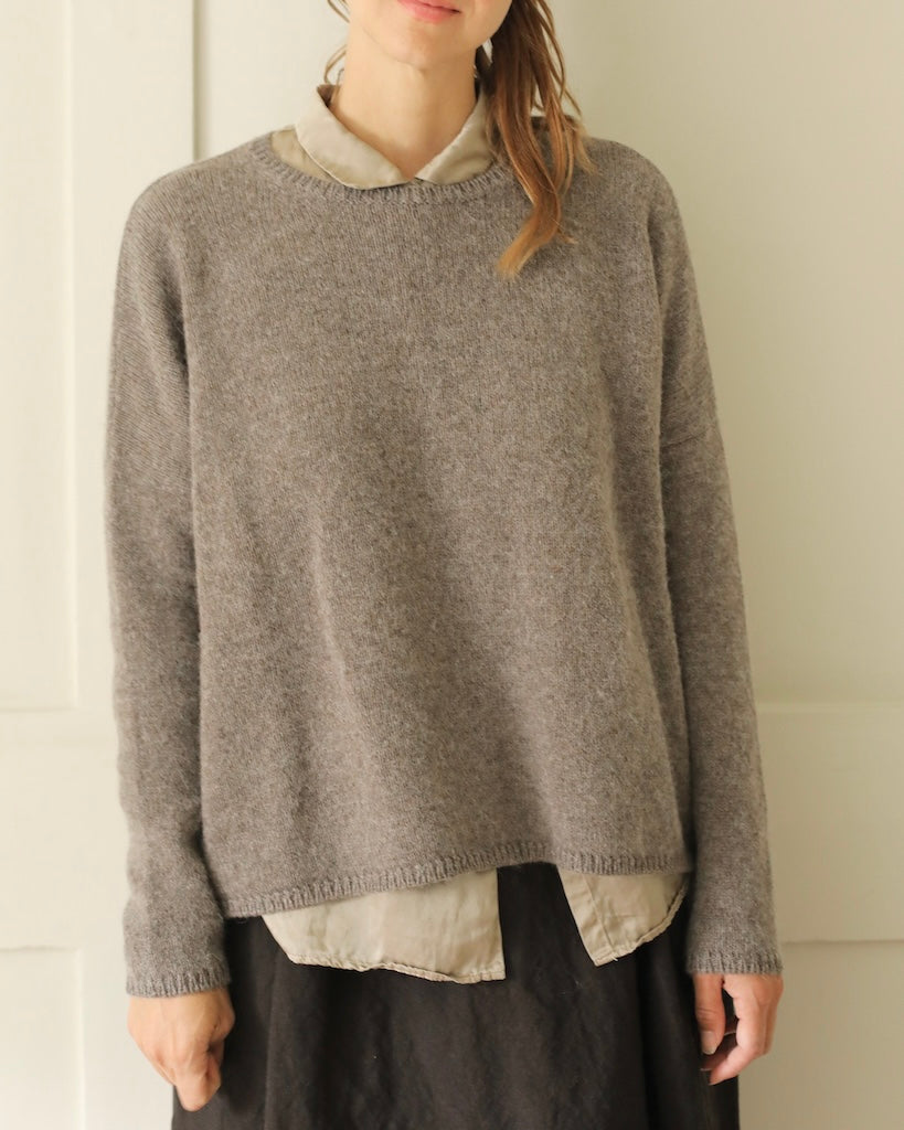 A timeless sweater in a beautifully soft, light yet warm, cashmere and alpaca blend, with a round neck, soft dropped shoulders, and a loose, flowing fit. Beautifully crafted with subtle fine edging, it balances elegance and ease, making it a versatile piece for any outfit.About the artist: