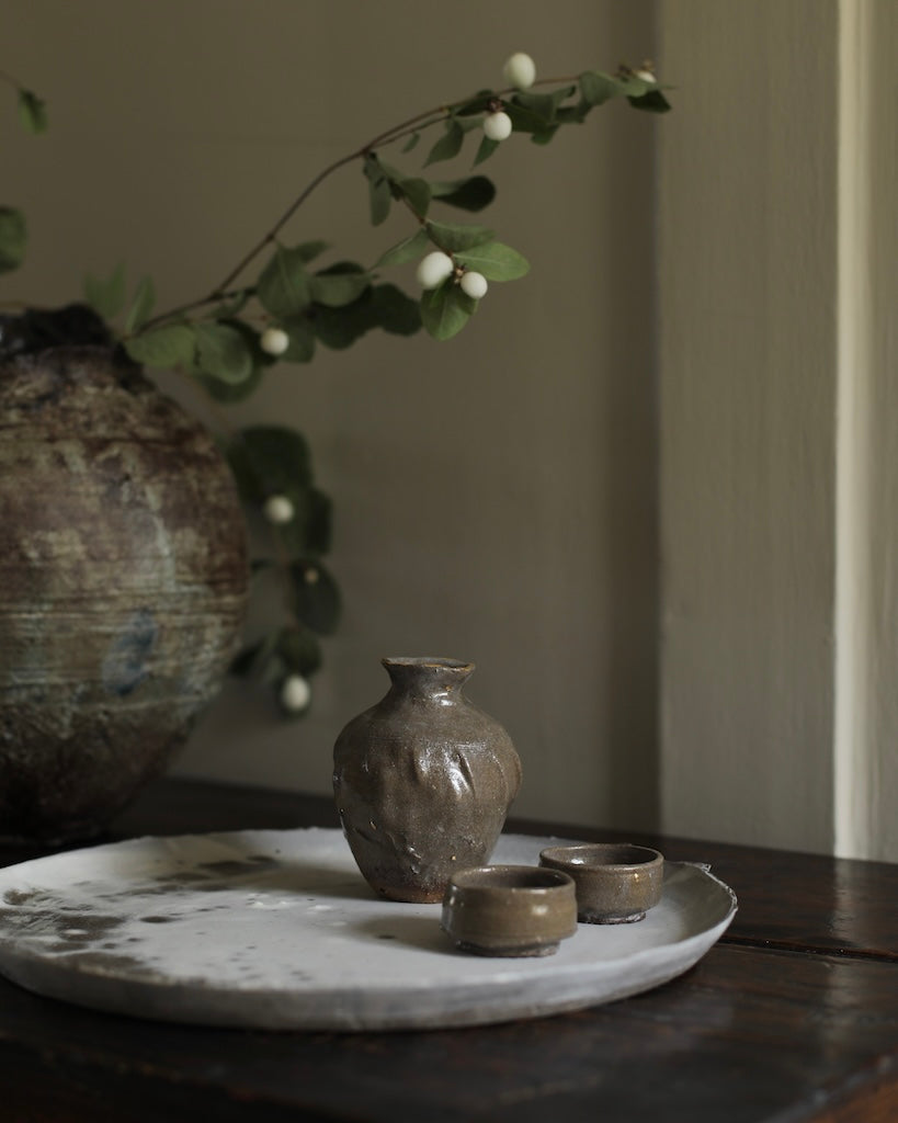 Abigail plays with a palette of dolomite and transparent glazes. Each piece undergoes a further firing to be lightly gilded with (24 carat) gold lustre, which highlight the shape of each form and create an intriguing contrast with the more humble tones and textures of her work.