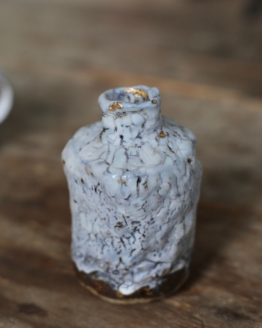Hand-thrown and thoughtfully crafted, Abigail Schama's ceramics combine balanced forms with intricate surface textures. Each piece is finished with a soft, natural-toned glaze and delicately accented with 24-carat gold, creating a harmonious interplay of subtle elegance and artistic expression. The minimalist designs and playful silhouettes invite a deeper appreciation of their unique details, making every piece a timeless work of art.