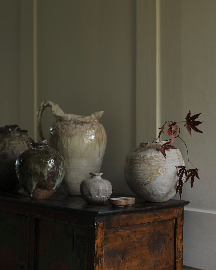 Abigail plays with a palette of dolomite and transparent glazes. Each piece undergoes a further firing to be lightly gilded with (24 carat) gold lustre, which highlight the shape of each form and create an intriguing contrast with the more humble tones and textures of her work.