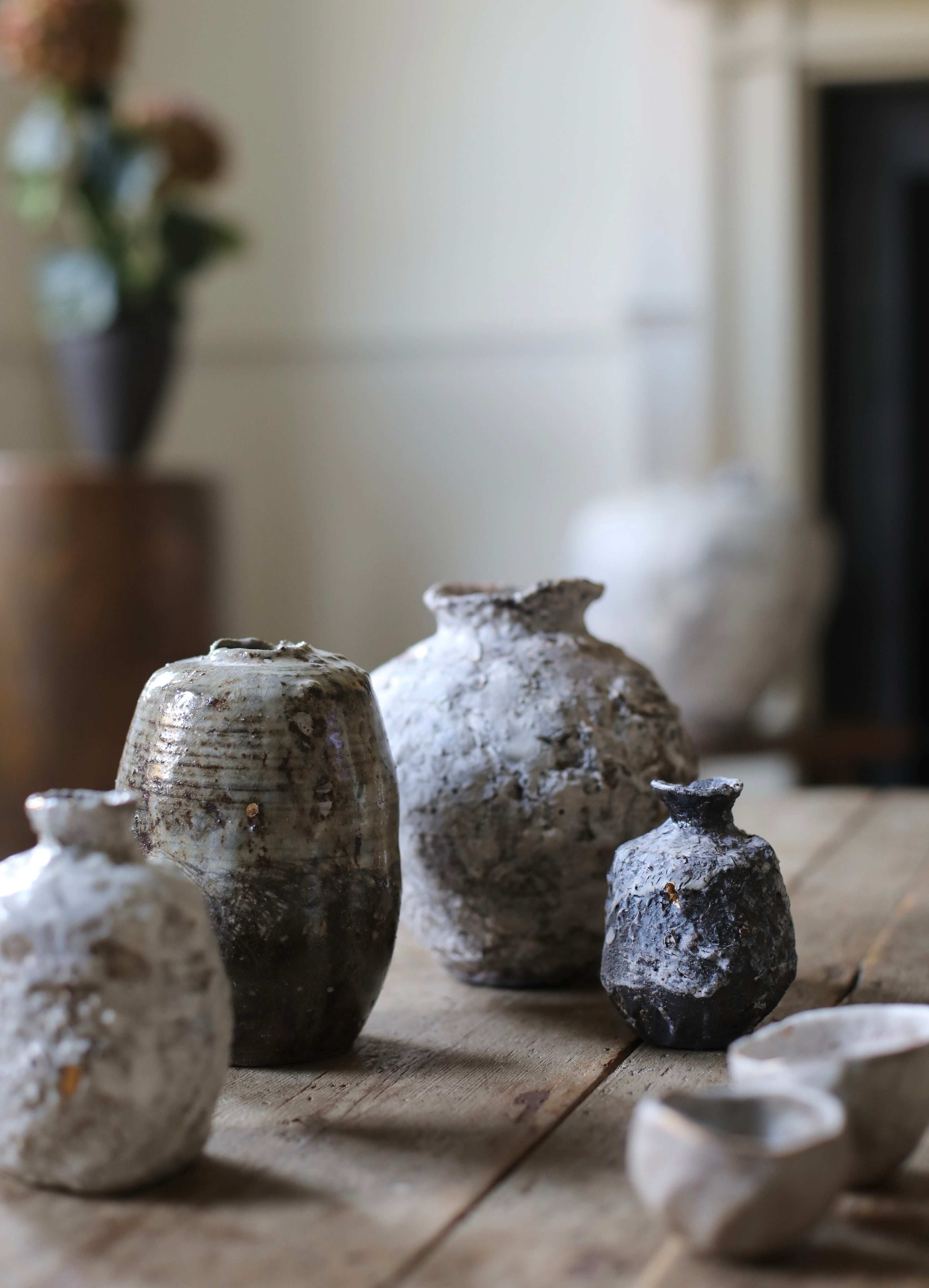 Abigail plays with a palette of dolomite and transparent glazes. Each piece undergoes a further firing to be lightly gilded with (24 carat) gold lustre, which highlight the shape of each form and create an intriguing contrast with the more humble tones and textures of her work.