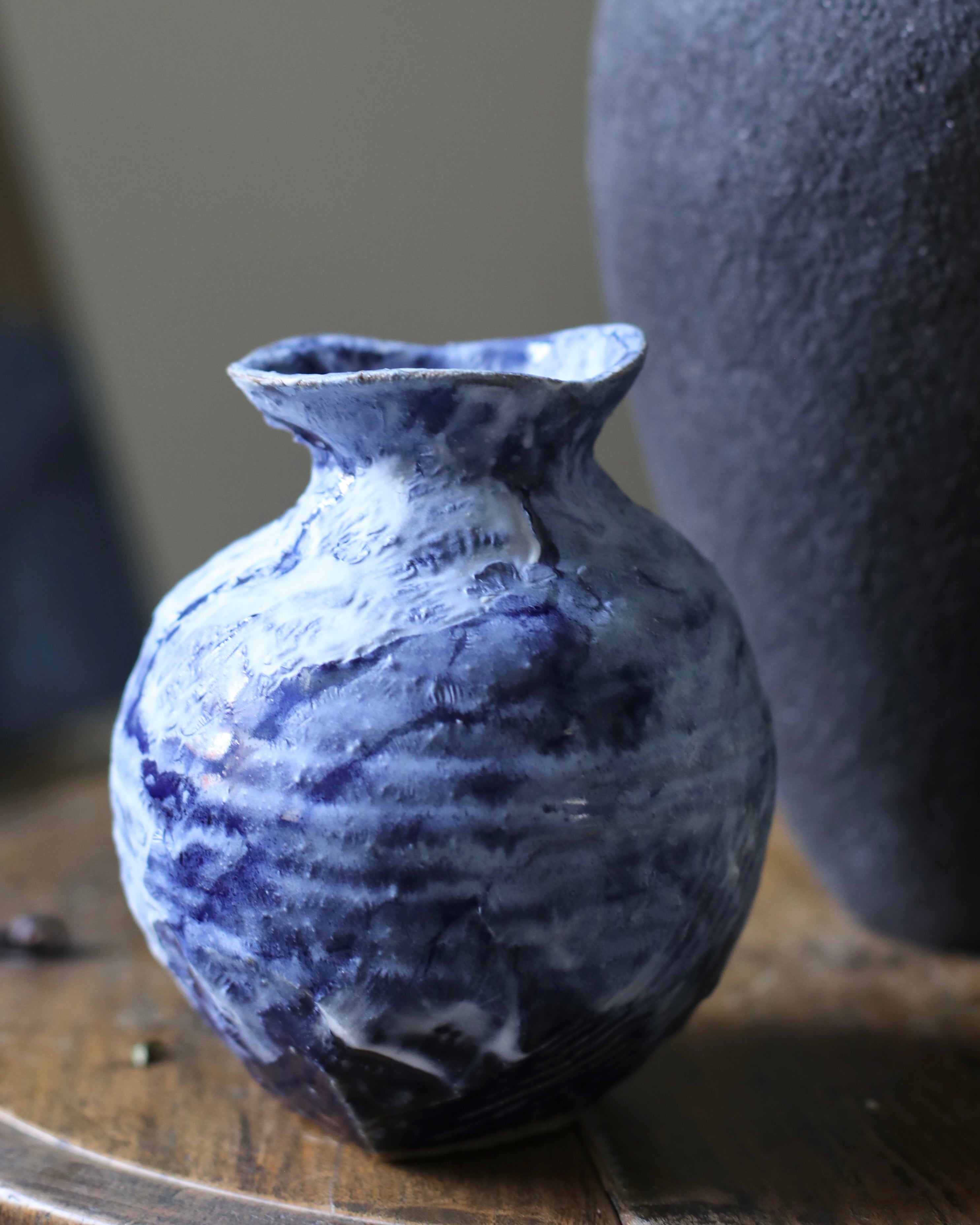 Hand-thrown and thoughtfully crafted, Abigail Schama's ceramics combine balanced forms with intricate surface textures. Each piece is finished with a soft, natural-toned glaze and strong blue hues, creating a harmonious interplay of subtle elegance and artistic expression. The minimalist designs and playful silhouettes invite a deeper appreciation of their unique details, making every piece a timeless work of art.