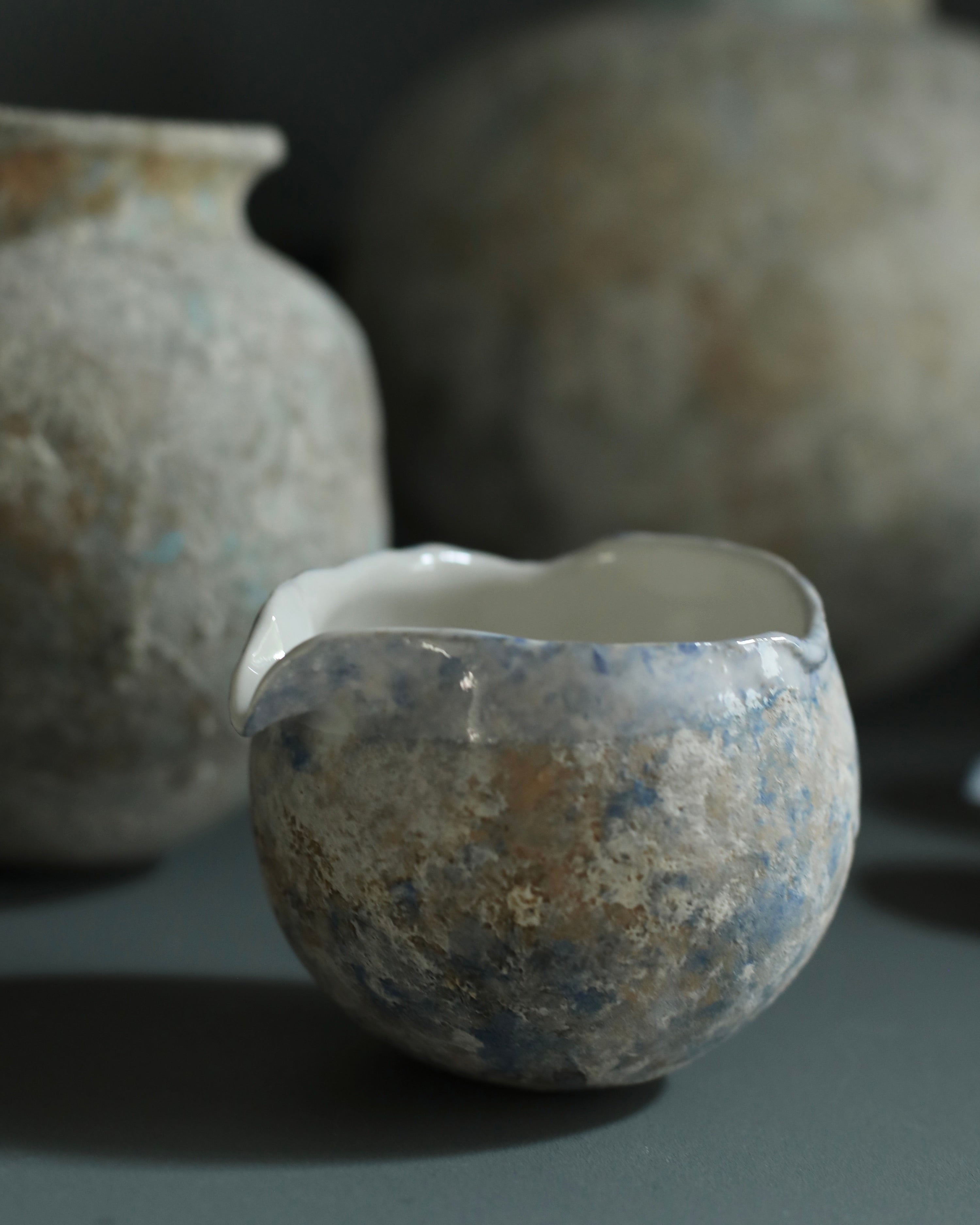 Akari Karugane is a ceramic artist based in Tajimi City, a region renowned for its Mino ware tradition. A graduate of Musashino Art University and the Tajimi City Ceramics Design Institute, Karugane creates expressive forms that convey the warmth and strength of clay. Her work draws from natural textures and ancient objects, embracing the organic shifts that occur during the firing process. With a nuanced approach that merges hand-building, wheel-throwing, and mold-making, her vessels and sculptural pieces embody a timeless aesthetic shaped by imperfection and transformation.