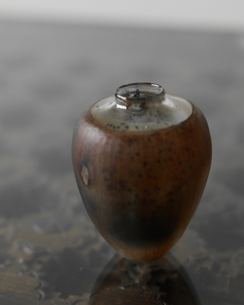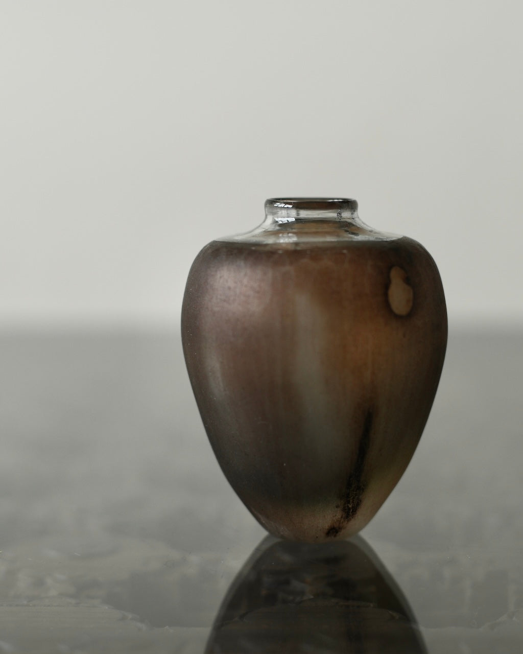 Aki Sakaida 'Smokey Brown Glass Vase with contrasting Clear Rim 13'