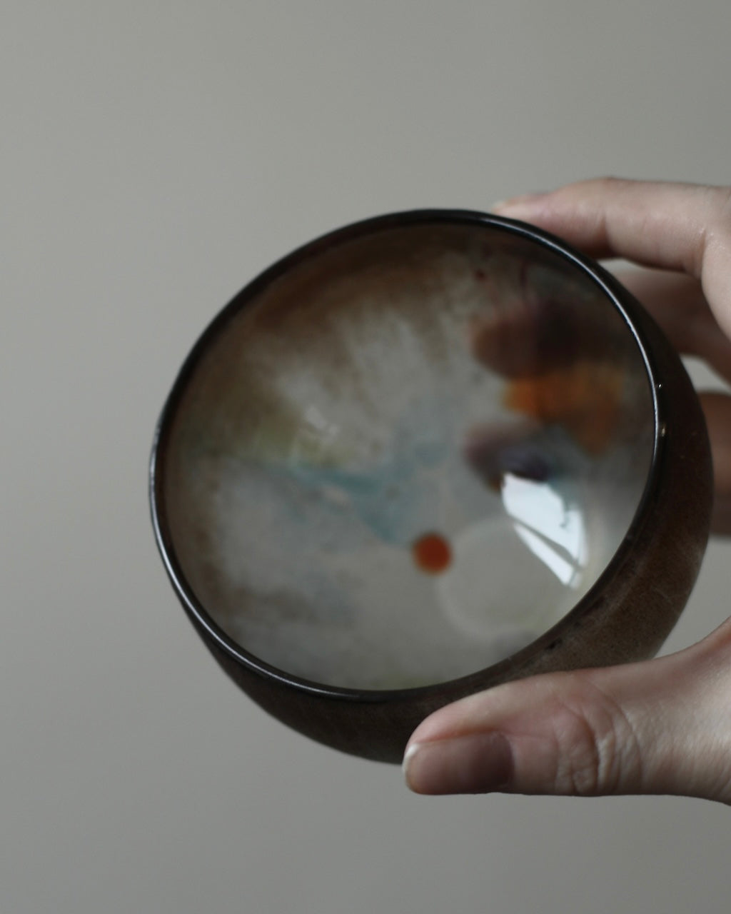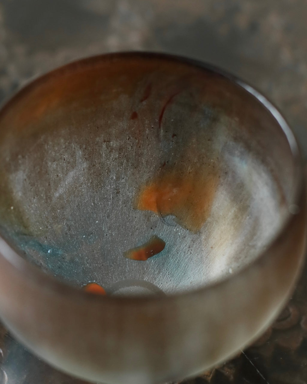 Aki Sakaida 'Smokey Tea Bowl with Orange and Blue 7'