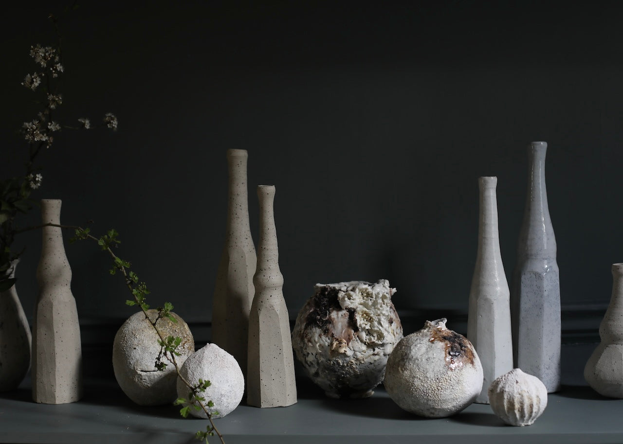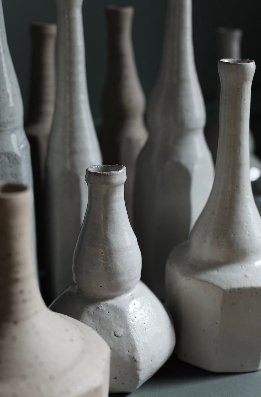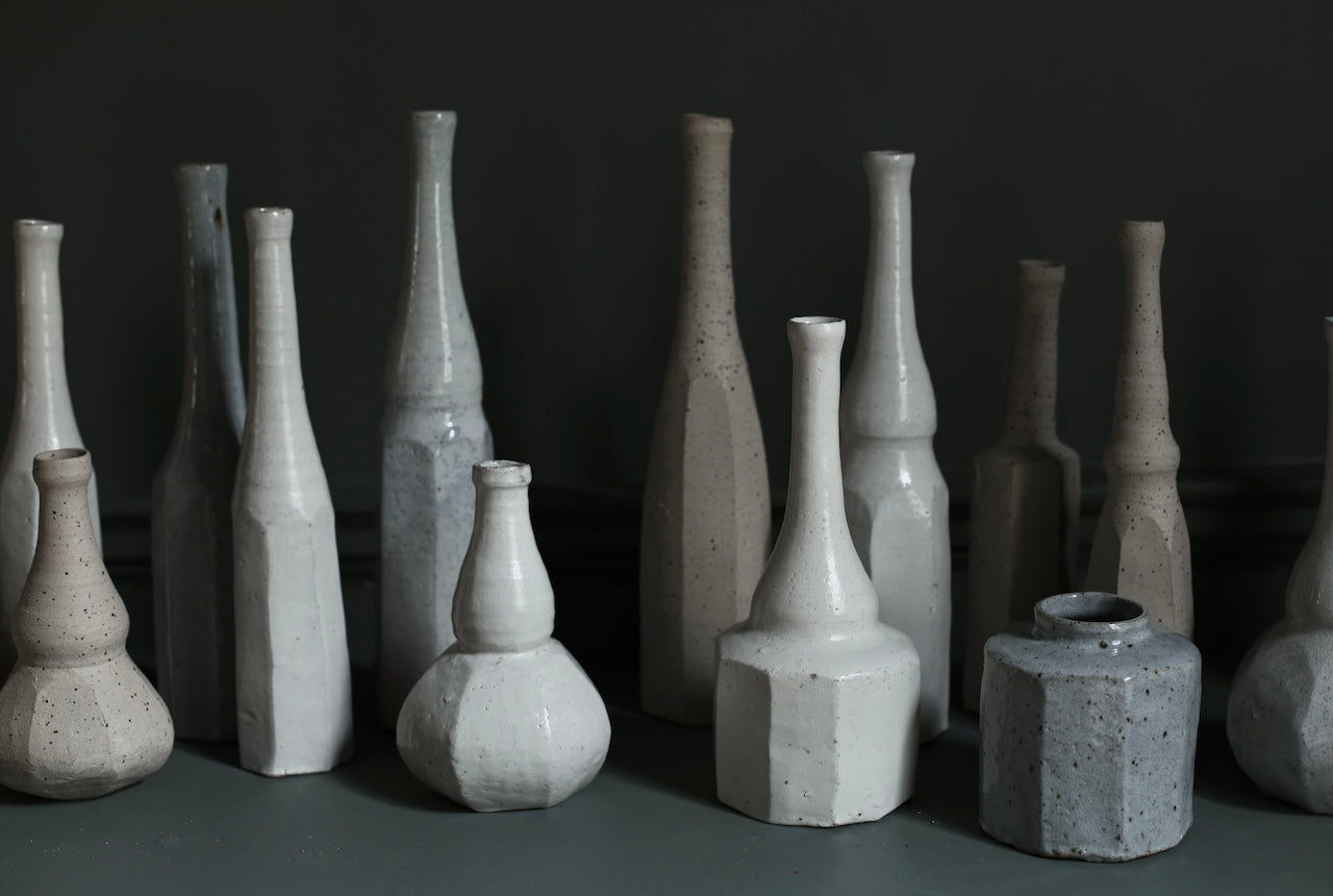 Hirai showcases her mastered skills in ceramics that she has acquired during many years of practise in these tall and elegant still life bottles. These new pieces demonstrate her instinctual style of making through the intricate details of the vessel’s surface. The new series of exciting and intriguing work blend Morandi forms and modern minimalistic soft shapes. Versatile and perfect for daily use, these stylish bottles are a true embodiment of Hirai’s perfected signature style.