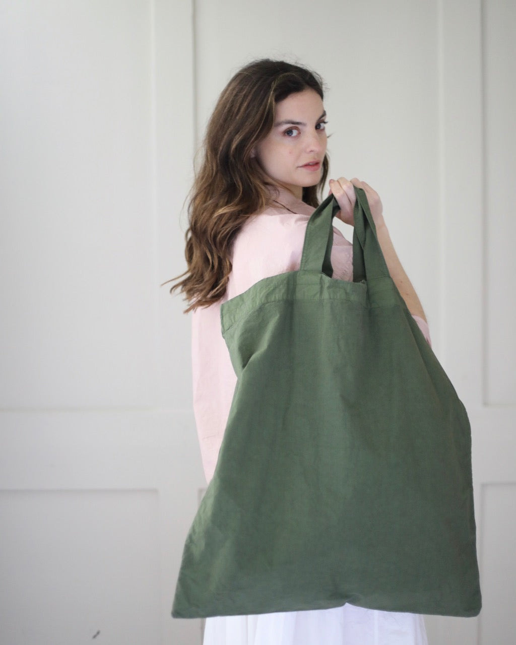 A practical and spacious companion, this large tote bag is crafted in Italy from durable cotton in green. It features two short handles for easy carrying, a sturdy construction that holds all your essentials and more with ease, and a convenient interior pocket that is perfect for keeping your smaller items organized. Offers both style and functionality.