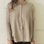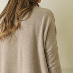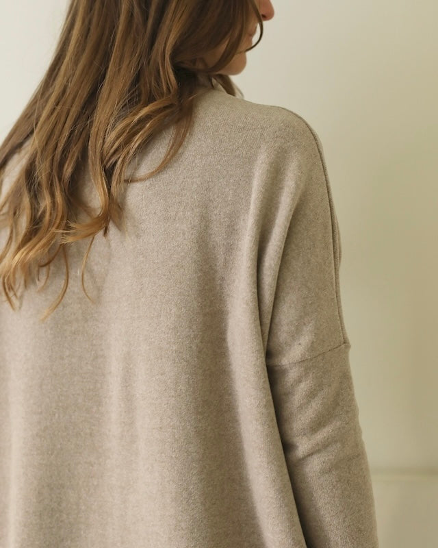 Dropped shoulders and long, slim sleeves create a soft contrast to the boxy, relaxed fit, allowing the piece to drape with ease while maintaining a polished feel. The marron glacé shade is a soft, beige-toned brown with subtle warmth, offering an elegant neutral that pairs effortlessly with a range of colours.