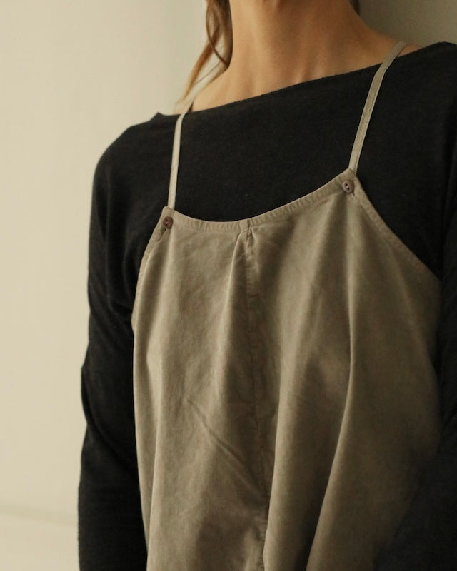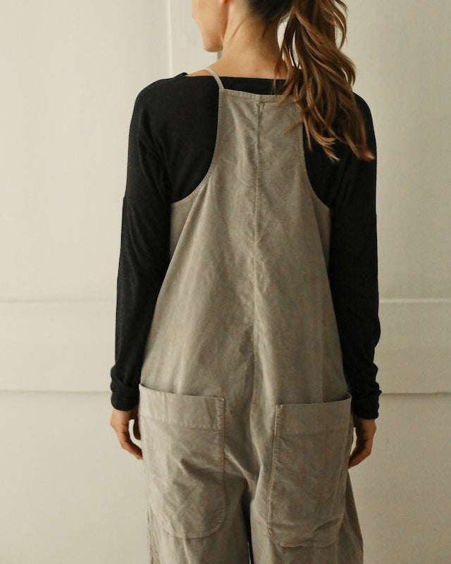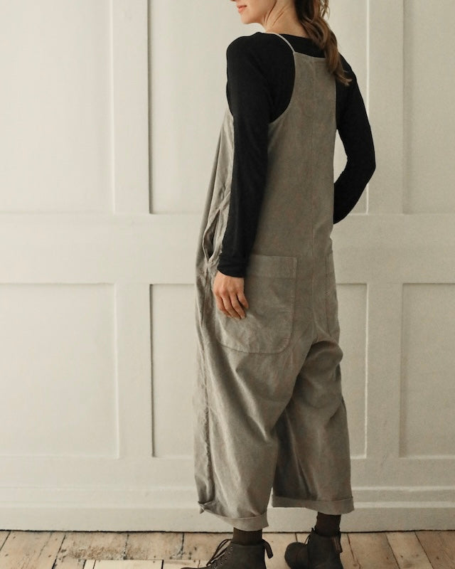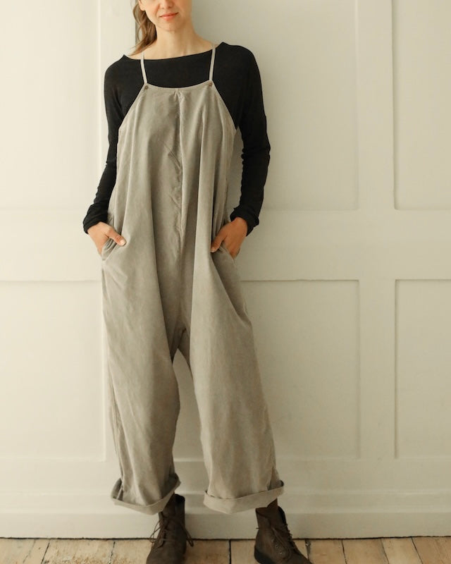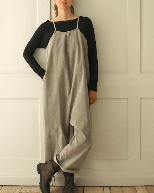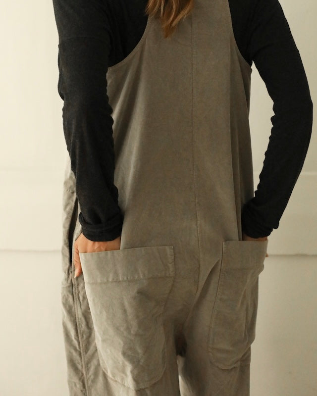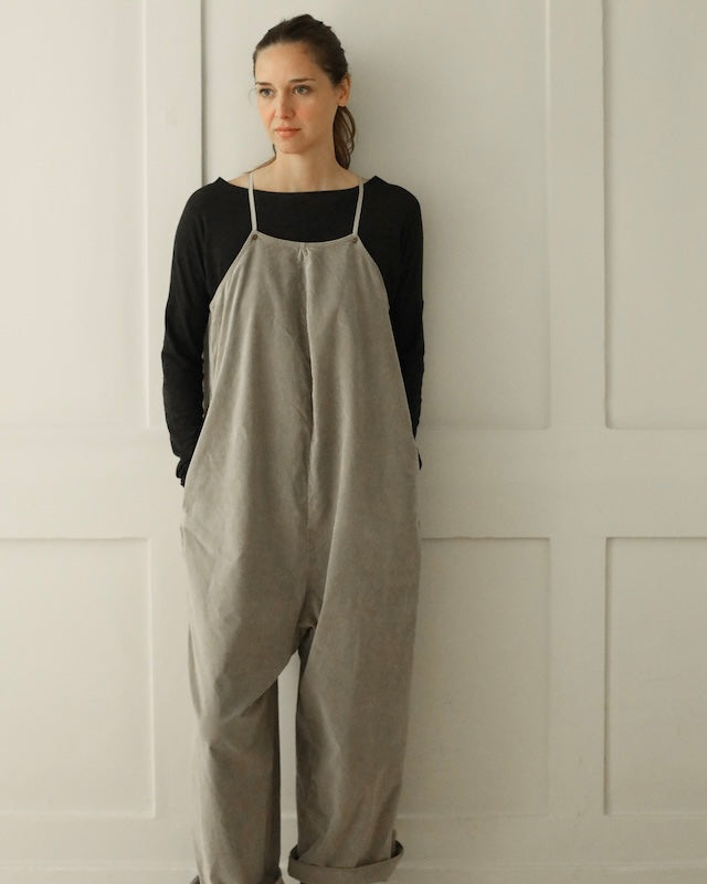 Modern and bold, the Salopette V is a wide-leg jumpsuit crafted from a lightweight cotton velvet with a soft, subtly textured finish and gentle stretch. The relaxed silhouette offers both ease and movement.