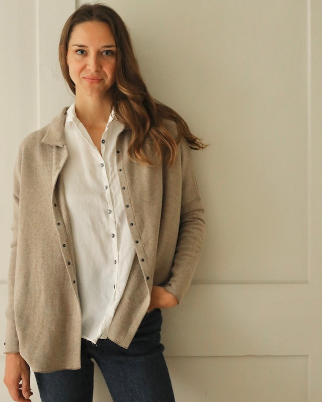 Whether paired with tailored trousers or worn loose over denim, it moves seamlessly between casual and elevated dressing.