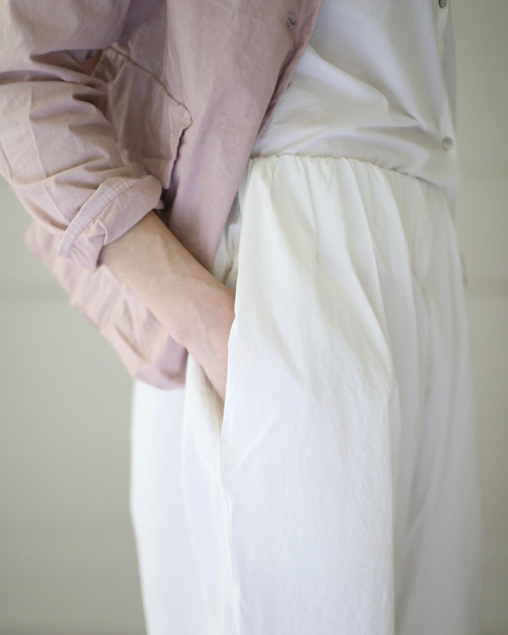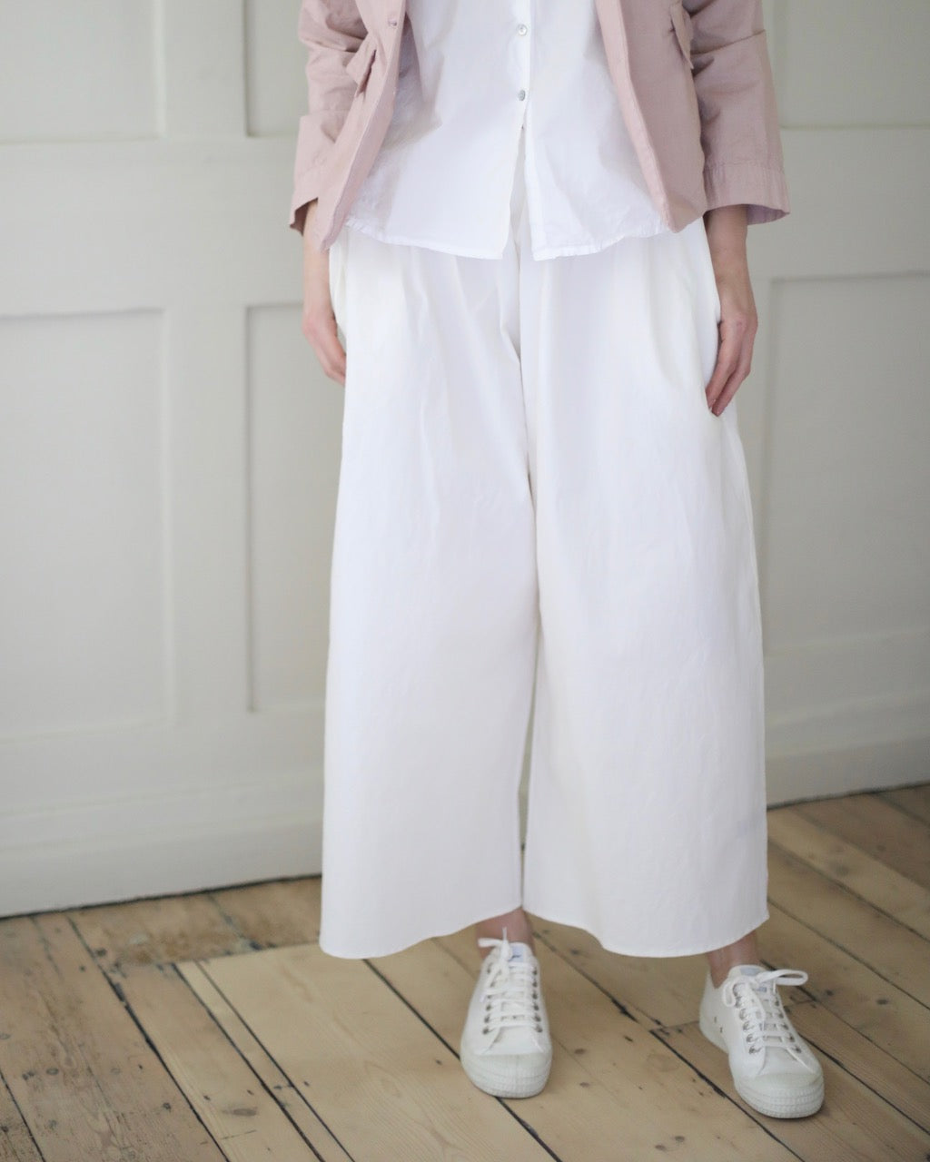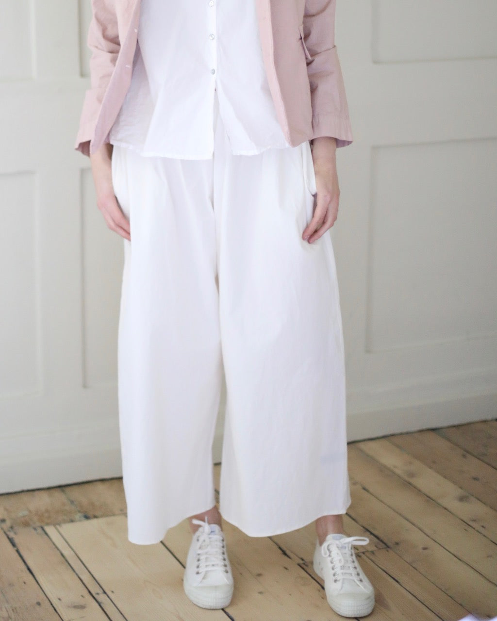 These off-white wide-leg trousers are made from soft and breathable cotton, perfect for hot weather. Featuring a relaxed fit and elasticated waist to ensure comfort and a lightly crinkled texture.