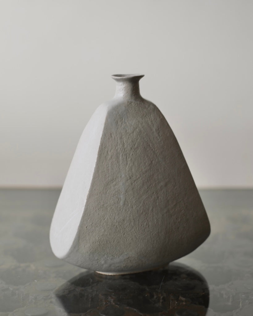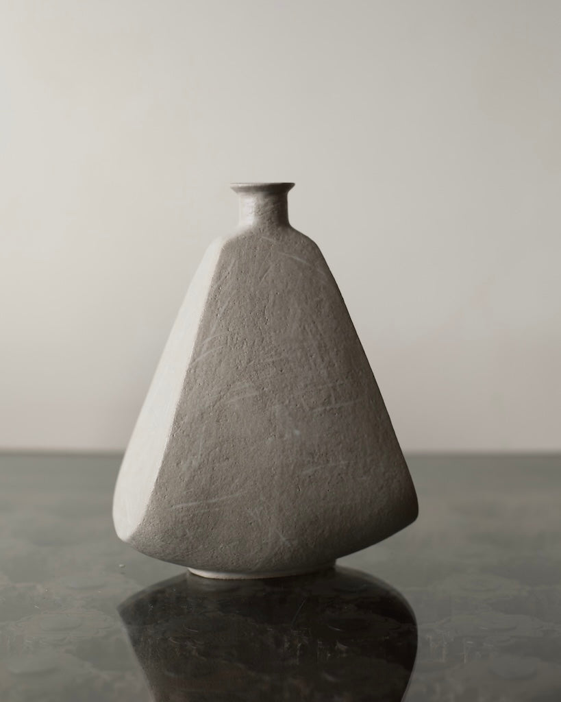 Influenced by the Japanese aesthetic philosophy of wabi-sabi, with its appreciation for imperfection and transience, the bottle carries a calm, understated presence. Its permeable matte glaze and stone-like finish lend a sense of age and stillness, allowing the piece to sit naturally alongside other objects without demanding attention.