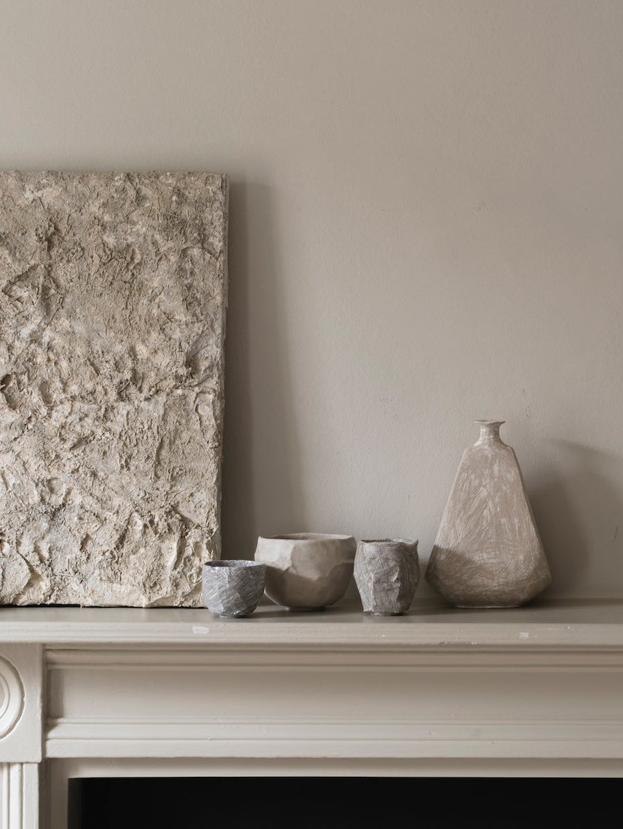 Over her time at the Royal College of Art she has explored artistic glazing, experimenting with new formulations, unusual application techniques and methods of firing. Her range of tea bowls and cups explore her personal connection to the sea, an interest in geology and clay carving method.