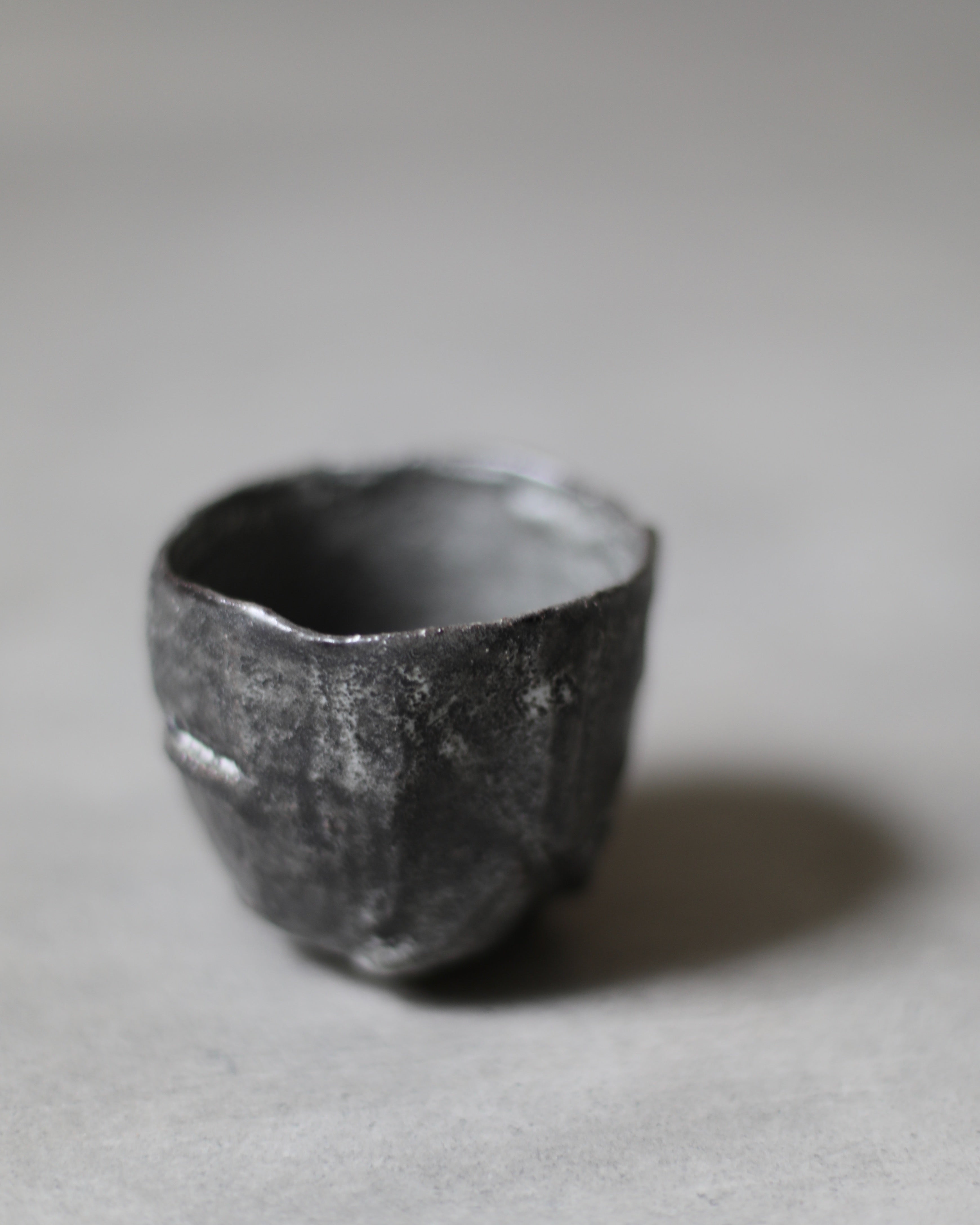 Carved from stoneware, glazed in iron black and a secondary reactive glaze to form a multilayered surface, this yunomi elegantly balances complex textures with a finely sculpted jaggedness, reflecting the artist’s interest in natural geomorphic forms and textures. Influenced by the Japanese aesthetic theory of wabi-sabi - an appreciation for beauty in imperfection - Lindenberg’s work evokes at once intimate personal stories and the vastness of nature.