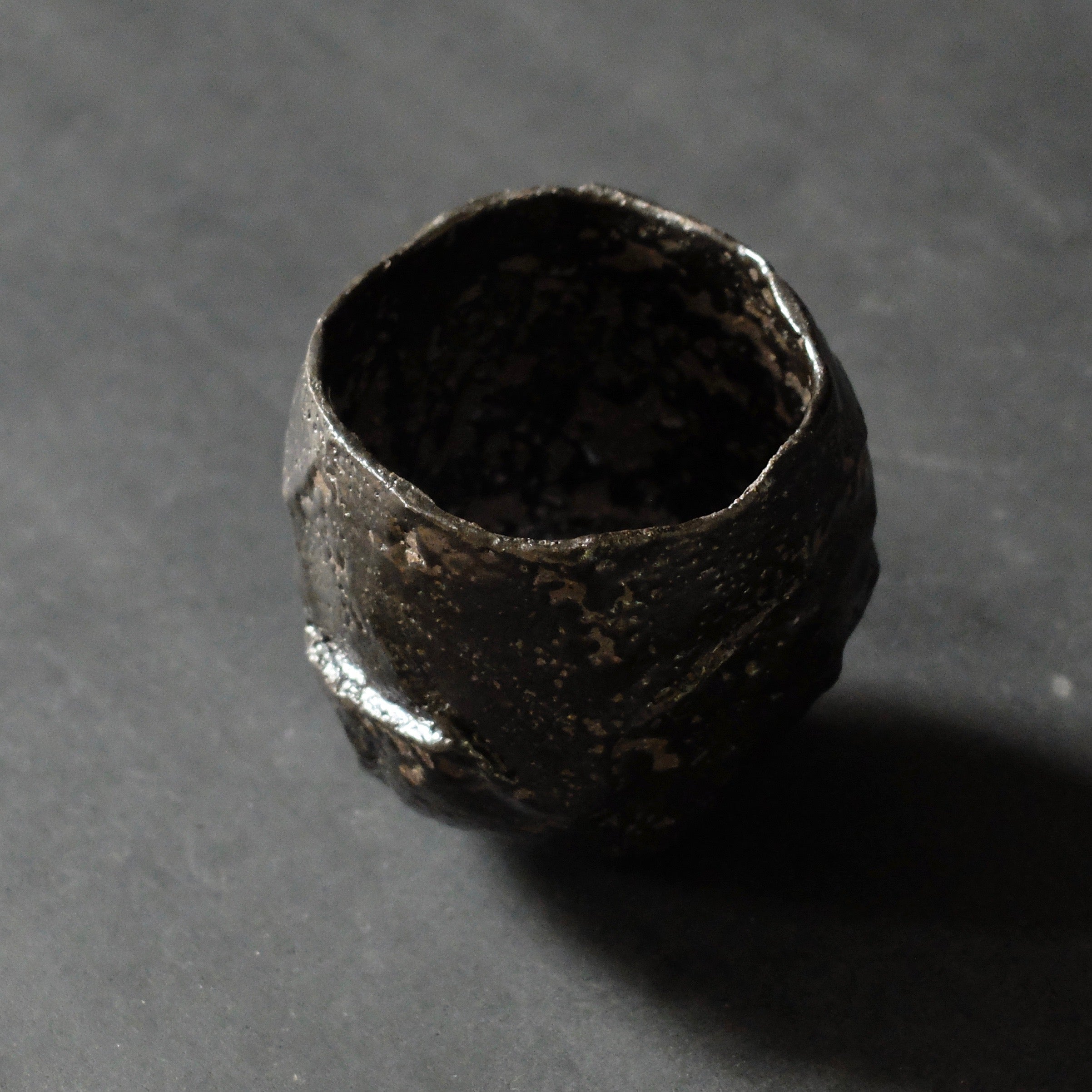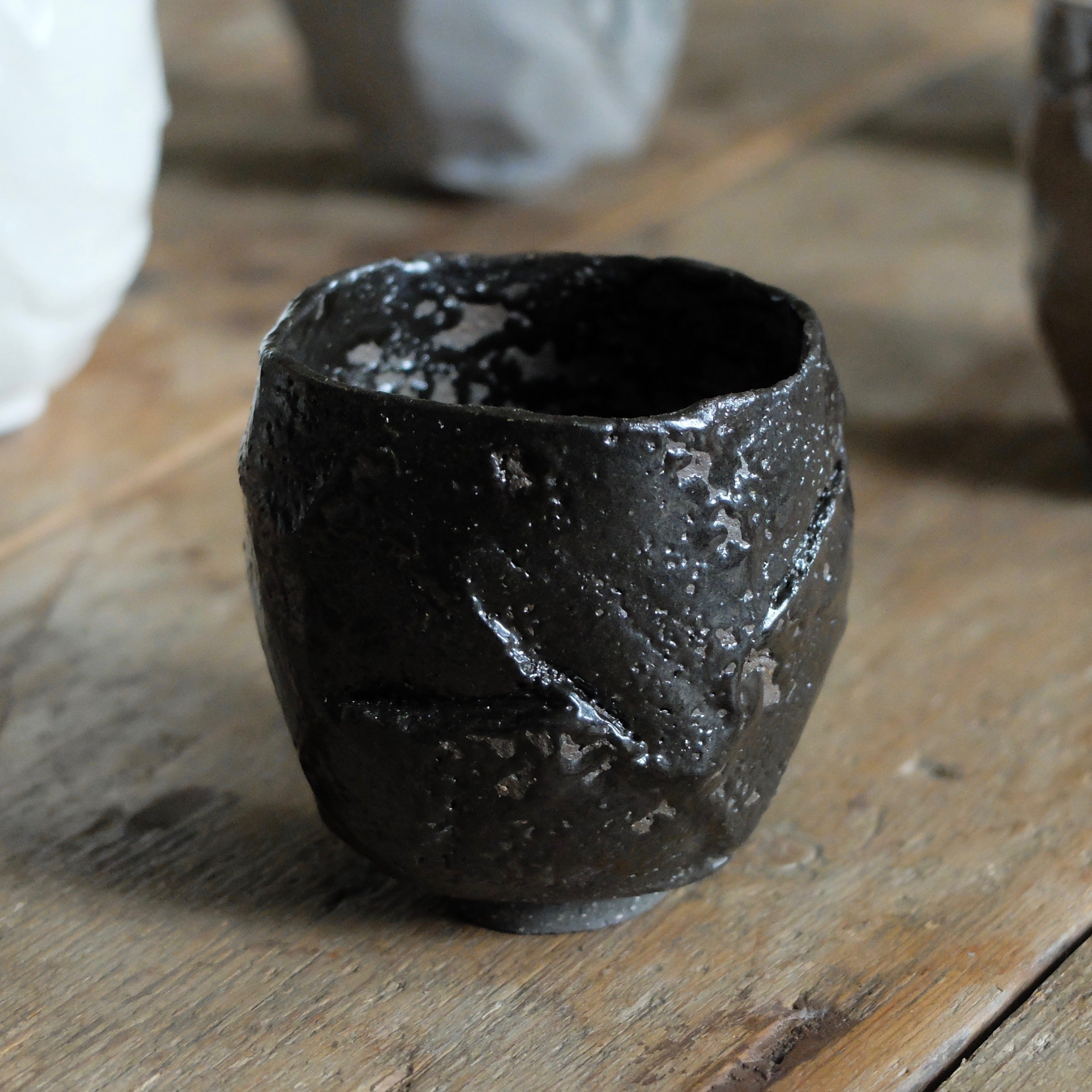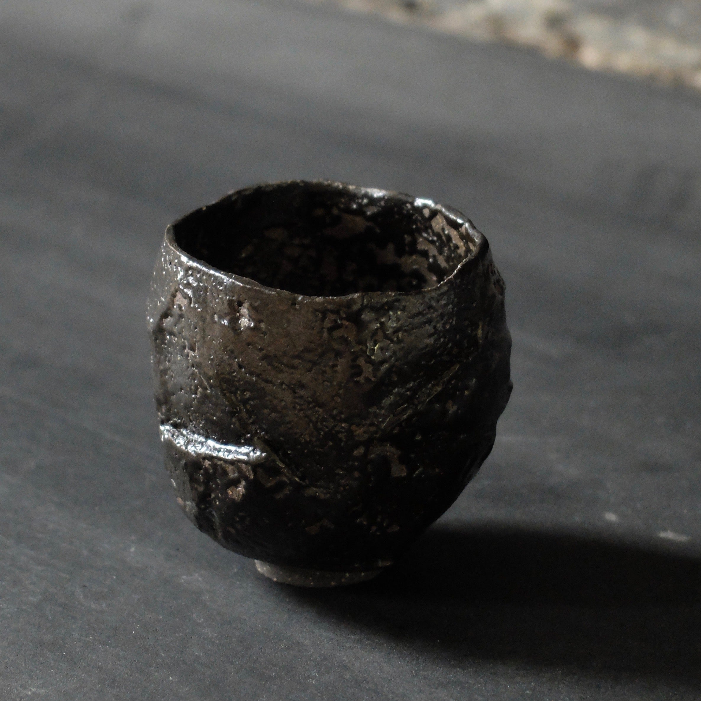 The beautiful cup is finely handcrafted by artist Annette Lindenberg using kurinuki, the traditional Japanese technique of carving from a single block of clay. The cup is made of warm chocolatey clay with black glaze. The artist’s yakisugi black glaze is inspired by the effect of charred wood, forming its own patination on the surface of the cup to suggest a sense of timelessness — a reminder of the resilient and powerful forces of nature. The edges of the kurinuki cuts on the exterior playfully capture the muted gloss of the glaze, highlighting its soft lustre. The interior is laced with an intricate web of the warm glaze where the contrasting rough body of the unglazed clay peeks through.