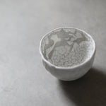 Carved from a stoneware body and glazed in a snow glaze, this tea bowl elegantly balances complex textures with a finely sculpted jaggedness, reflecting the artist’s interest in natural geomorphic forms and textures.