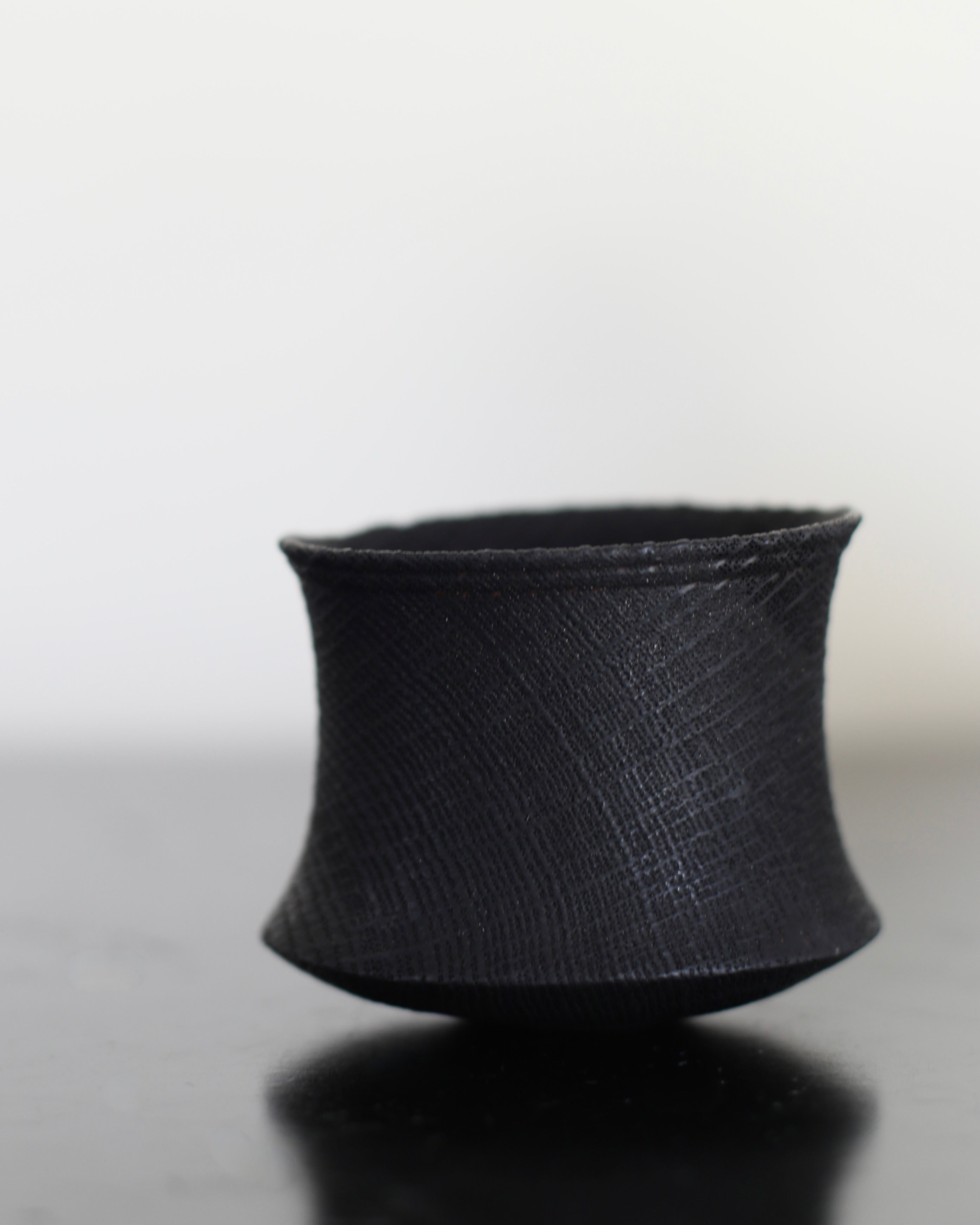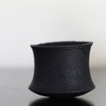 Crafted from scorched oak, the form of this vessel carries a distinctive silhouette. The blackened surface reveals the grain of the wood while bearing visible stitches, subtle scars that speak of repair and resilience. These marks introduce a tension between fragility and strength, damage and healing, giving the piece an almost ceremonial presence.