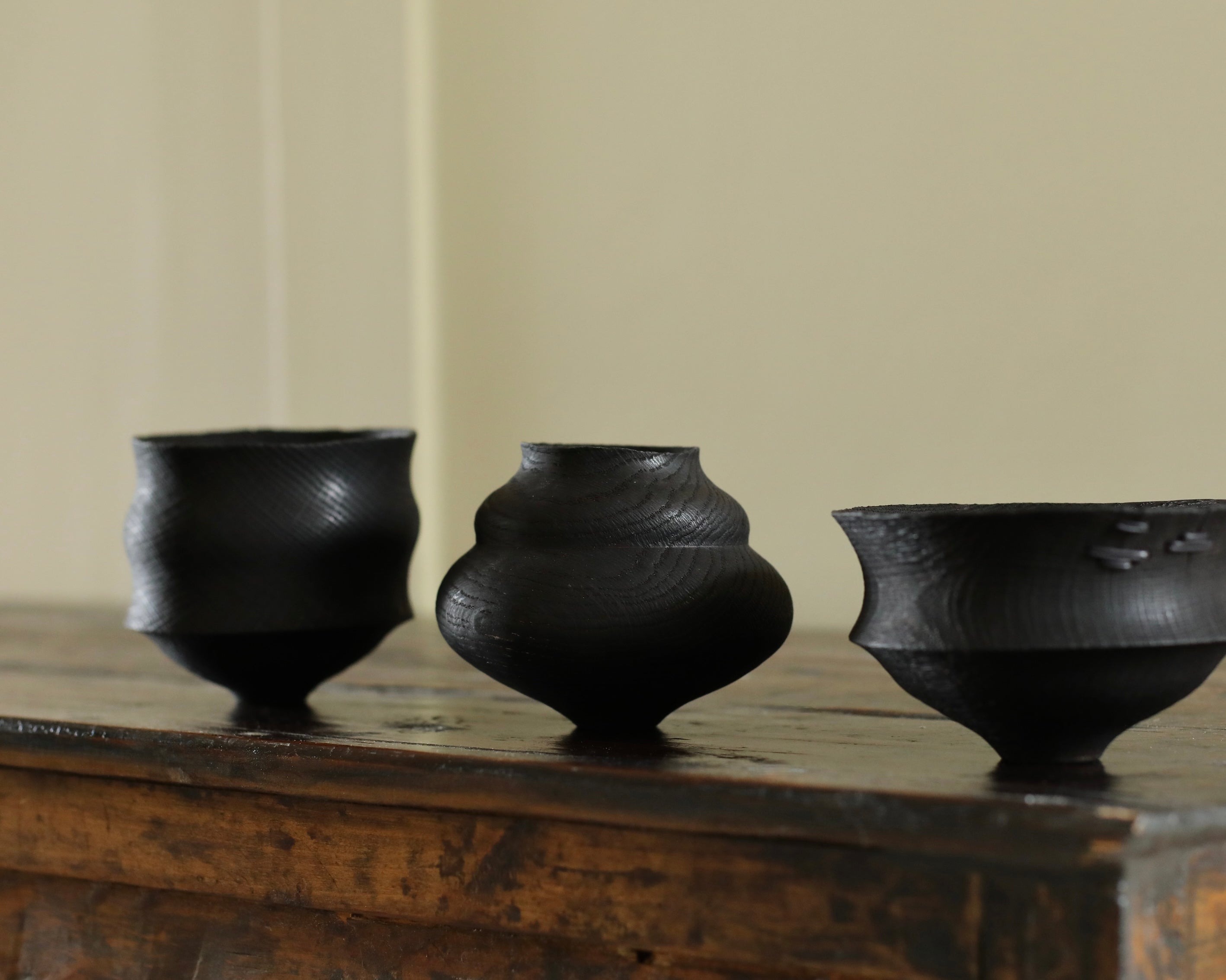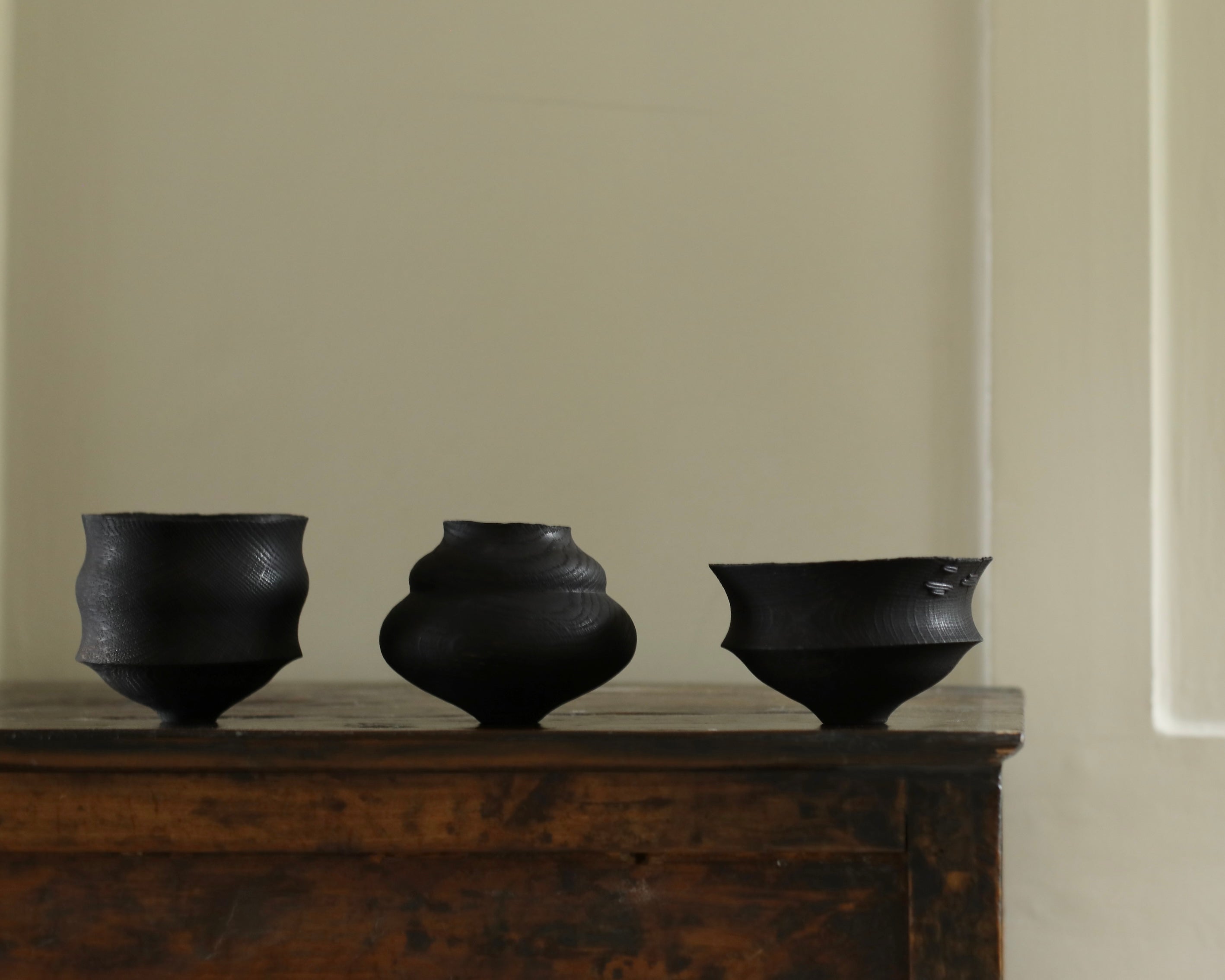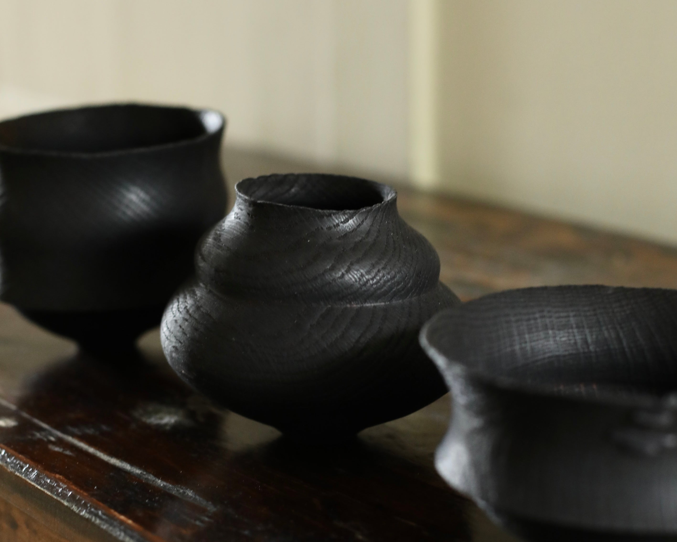 Ash & Plumb 'Set of Three Charred Small Oak Vessels'