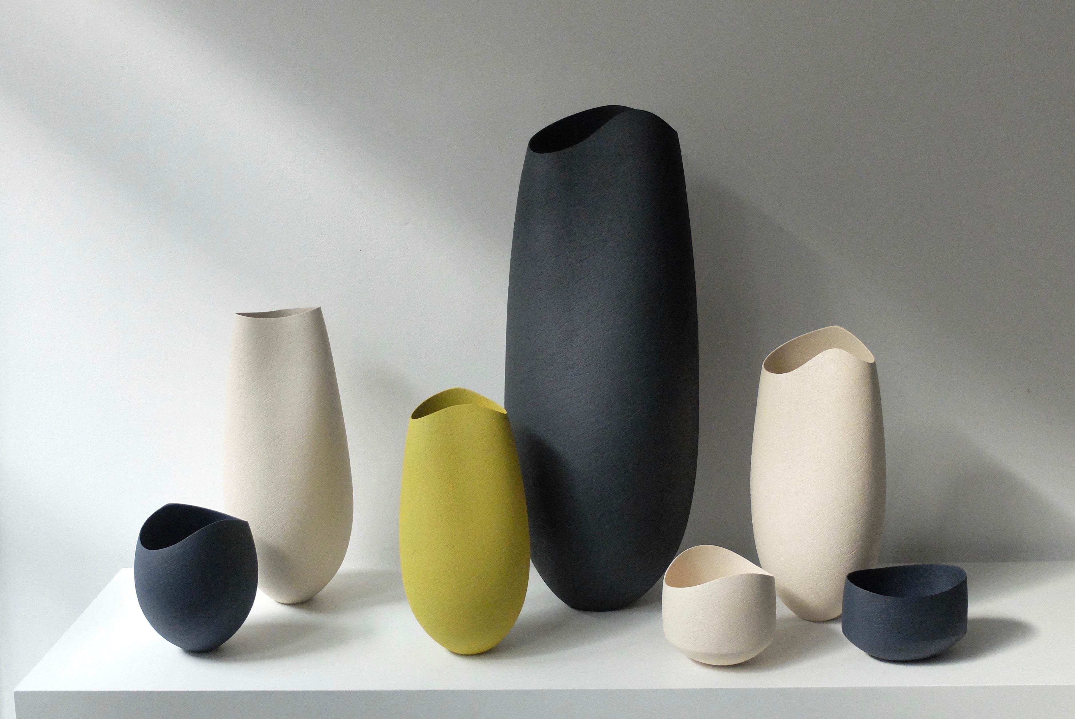 Hanna’s enjoyment of drawing ceramics was translated to creating ceramics through his future wife, sculptor Sue Hanna, and he went on to undertake an MA in Ceramics and Glass at the Royal College of Art in London. It is the juxtaposition of the resulting lines, profiles and spaces which emerge from his continually developing process which intrigues Hanna. His pieces are intended to provoke emotional and intellectual responses and their success in doing so has made him the recipient of numerous awards. His work is represented in prestigious collections such as the Victoria and Albert Museum and the Fitzwilliam Museum.