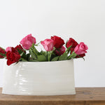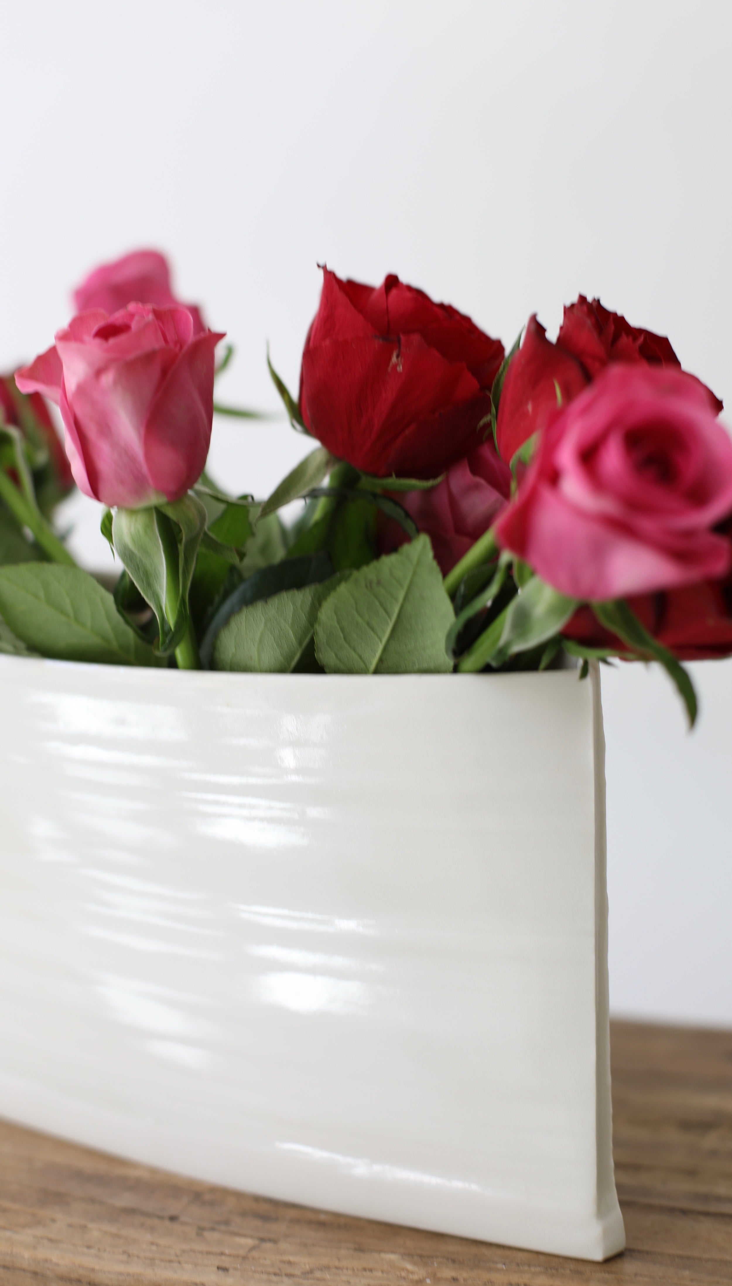This delicate constructed pot exhibits a muted toned glaze; emphasising the contrasted fluidity and sharpness of the form, reinforcing its carved edges, cuts and organic curvature. Masterfully crafted by artist Carina Ciscato, through this work the beholder is encouraged to discover a hidden beauty beyond function and predictability, as the artist questions space and volume, function and purpose, balance and fragility, in search of a purer aesthetic that allows for new observations and ways of seeing and perceiving, rendering the object redefined and reinvented.