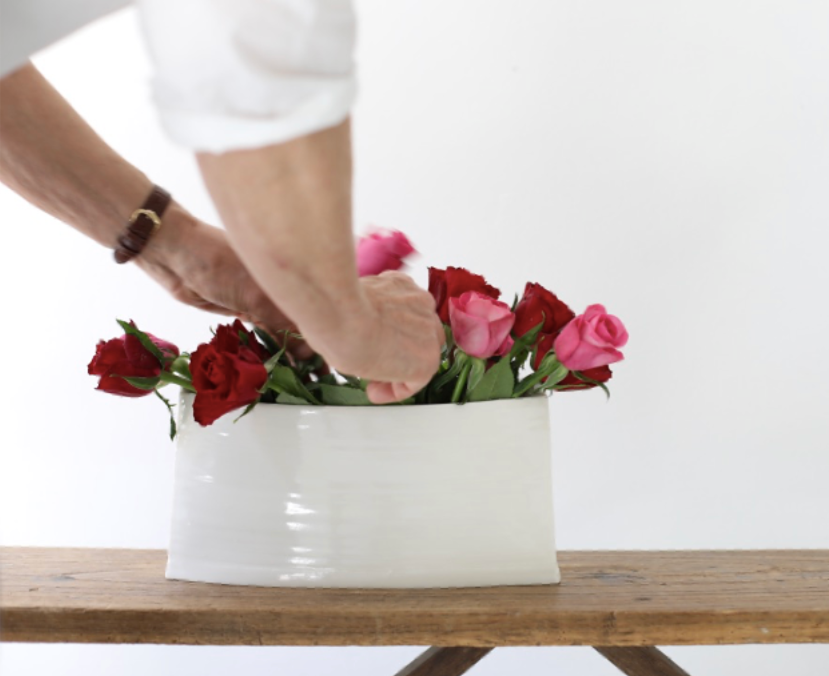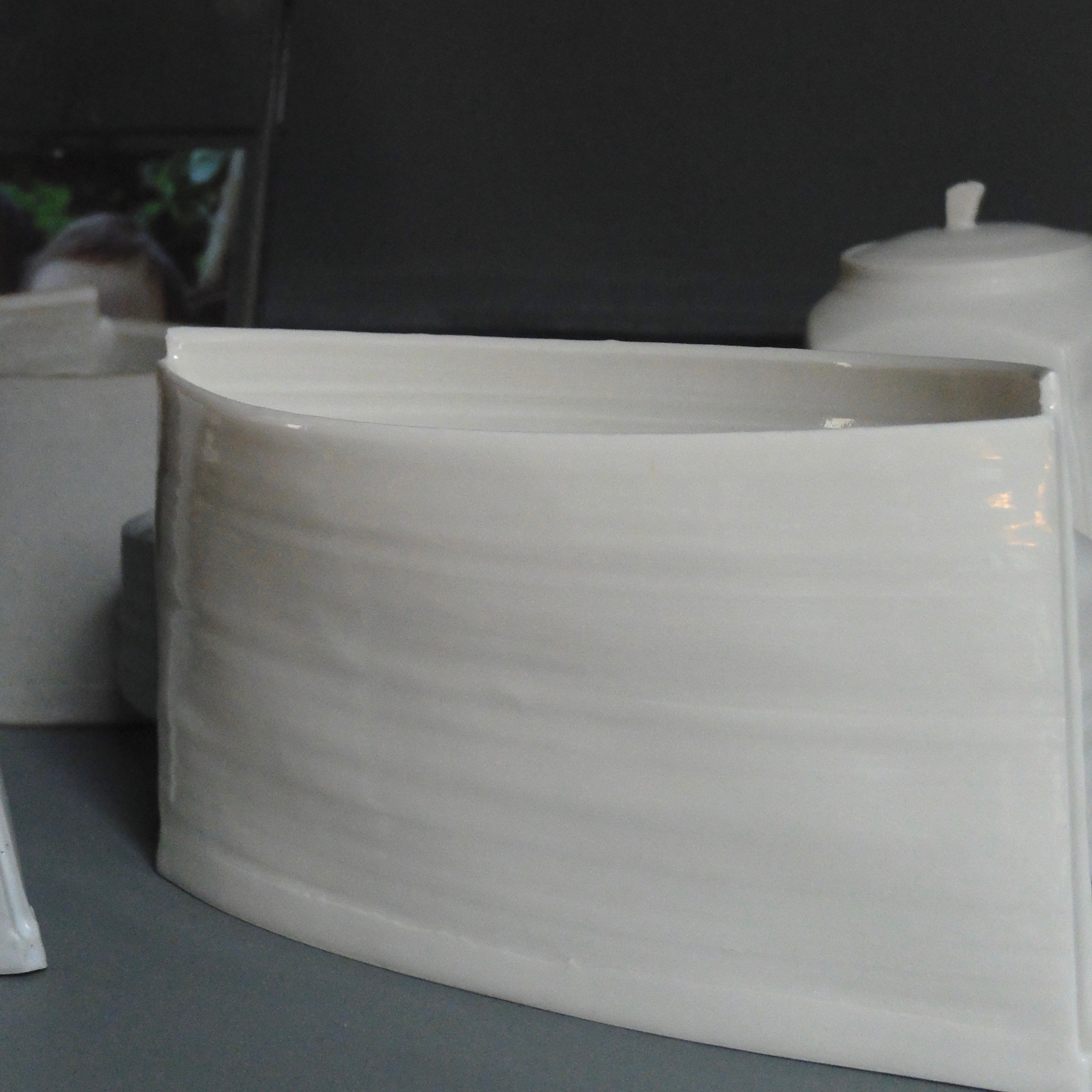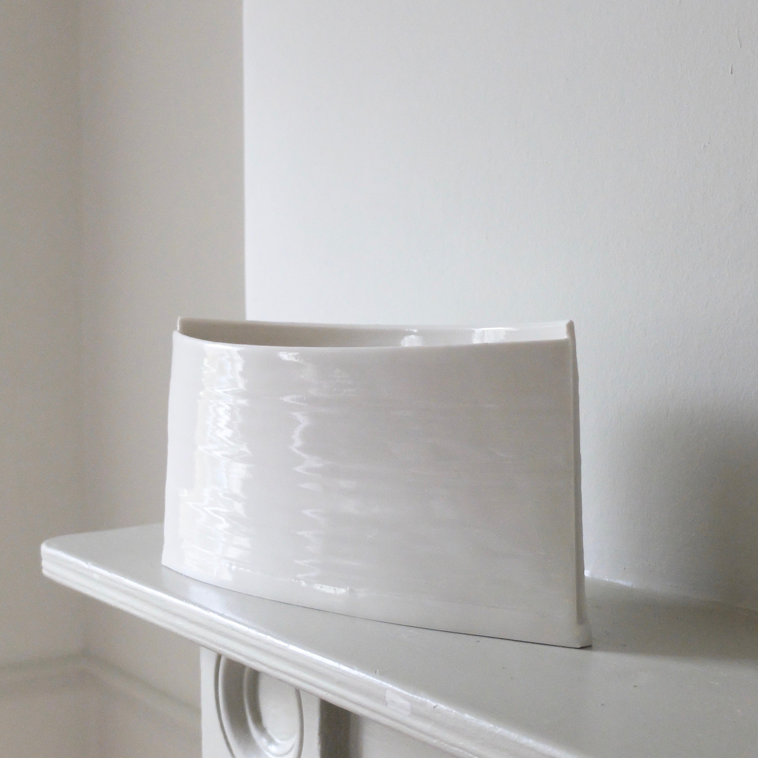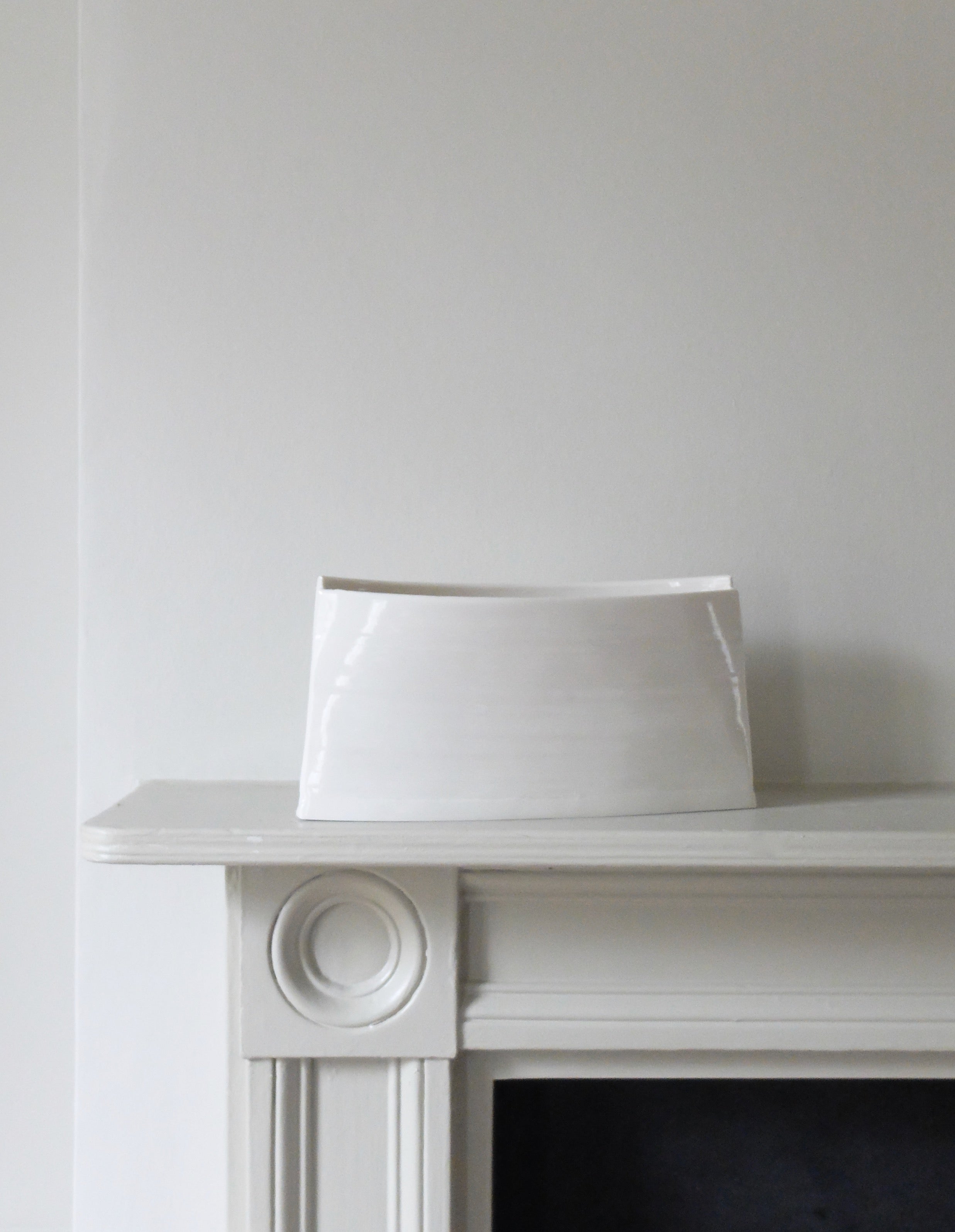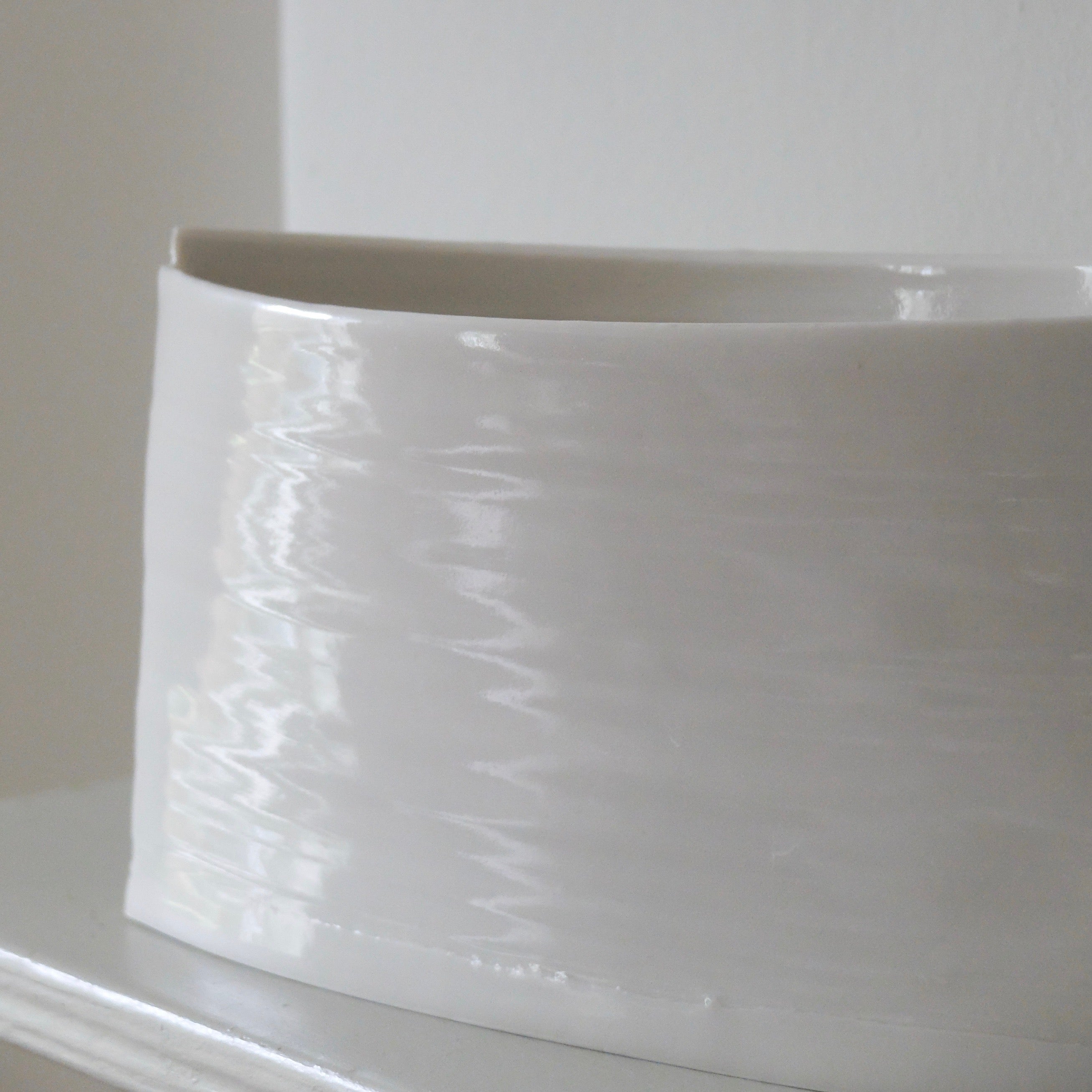 Working primarily in porcelain, Ciscato explores the limits of her material through throwing on the wheel then later tearing, cutting, folding and stretching to assemble her pieces. Porcelain’s duality of strength and fragility allows the artist to materially explore form, spatial perception and structure in new and challenging ways. Carefully conceived, her spontaneous and fluid works speak of their process, which is exposed and revealed through their layered construction and exhibition of subtle marks, which are gently applied either directly after throwing on the wheel or when the clay has reached a leather-hard stage. This allows new relationships to emerge, as while Ciscato’s works all belong to the same familial beginnings, formed on the wheel from replica methods and shapes - a base, sides, sometimes a lid, each ends with its own unique characteristics which cannot be reproduced.