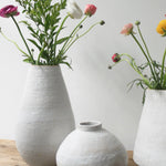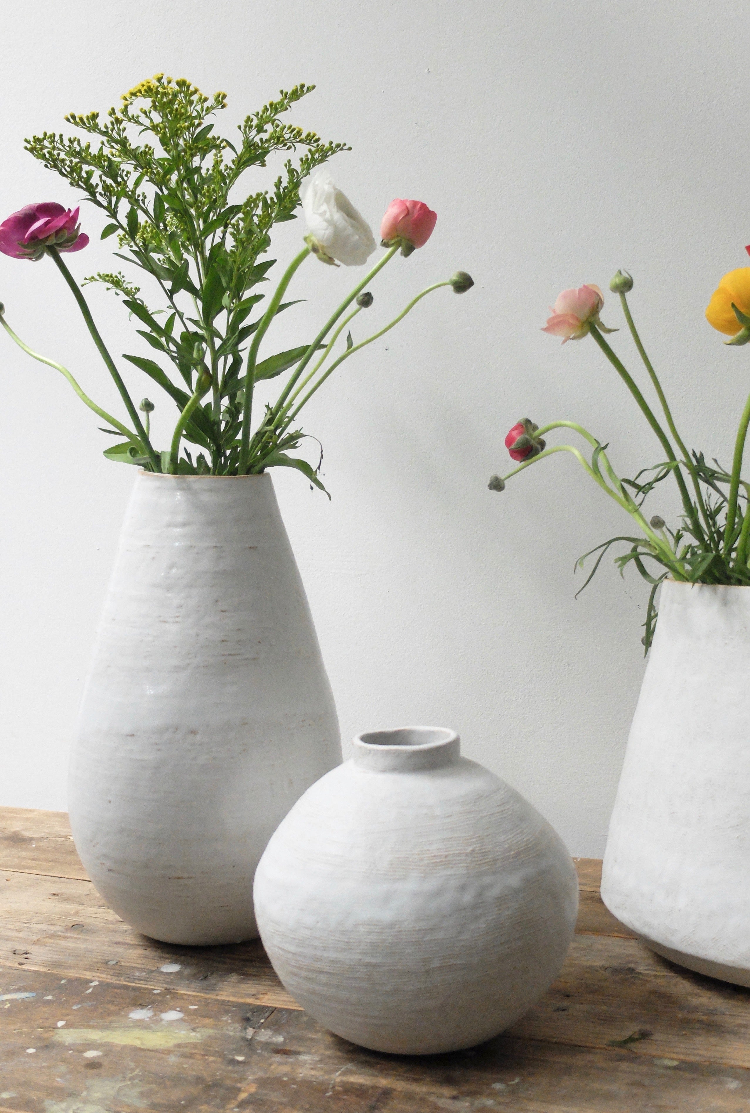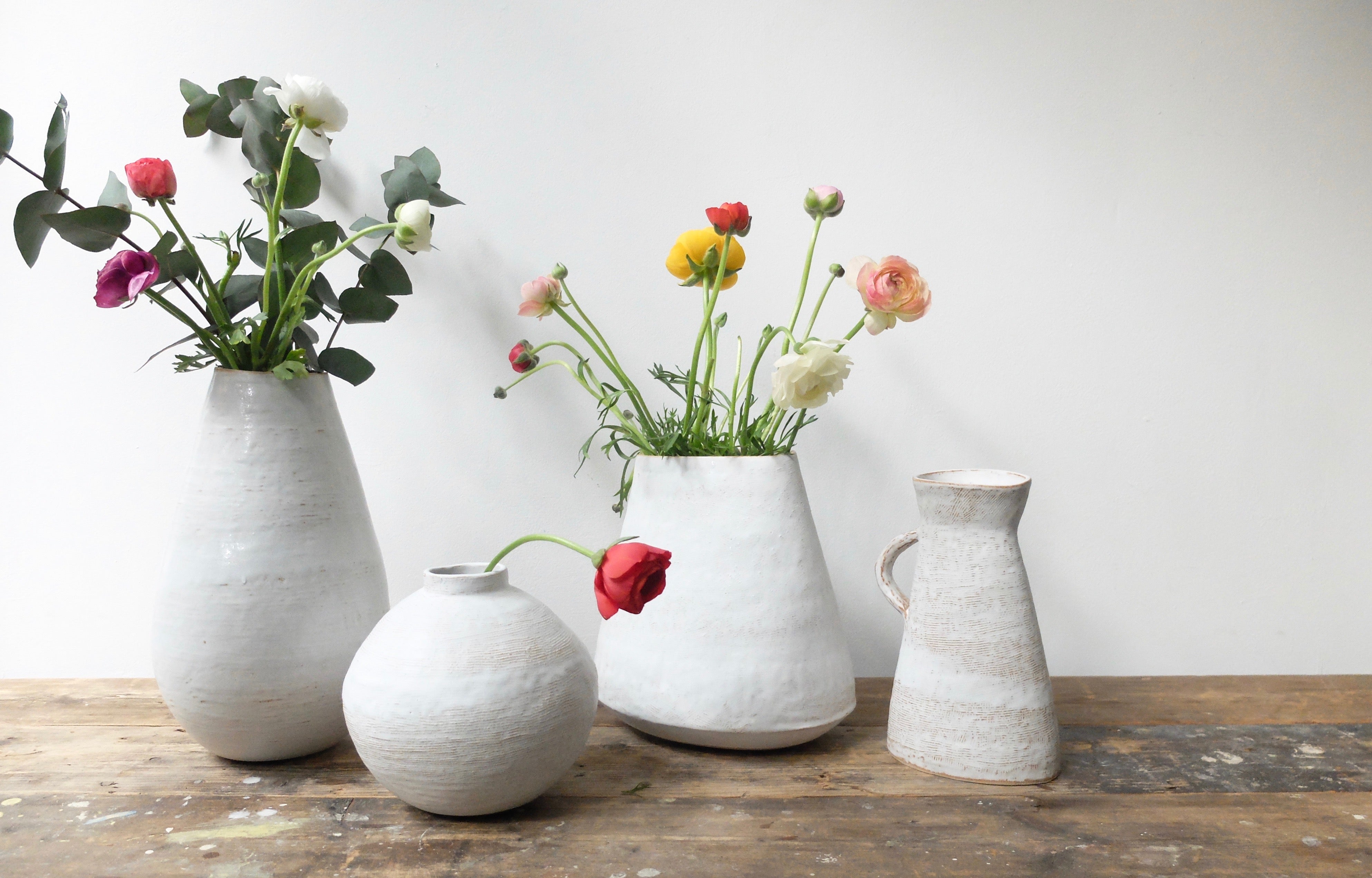 Iva Polachova is a ceramicist based in London specialising in fluid and tactile tableware and decorative vessels in a limited palette. Iva takes inspiration from Constantin Brancusi’s notion of the essential in art and Paul Klee’s belief that the artist distils from nature. She likes working with unglazed porcelain because of the strength that its sensuous and fragile appearance belies, but she also works with a variety of clays, from the refined to the coarse. Pieces are dipped in white matt or shiny glazes. The use of white is integral to Iva’s practice as it reveals the clay, whilst simultaneously covering it, and emphasizes the form and texture of her pieces. Her gently textured surfaces are created using simple ceramic tools, such as a scraper and rasp blades which are left visible to attest to their maker’s hand. Iva’s prioritization of the creative process and rhythm of making results in pieces that are imbued with a sense of balance, clarity and stillness.