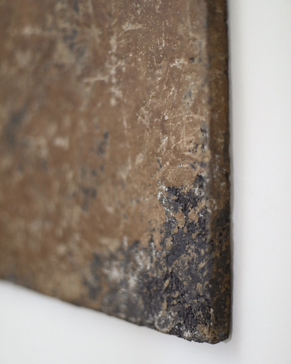 Created using hand-collected soil, this tactile and textural piece mirrors natural and organic processes. Scratching, shaving, polishing and spreading, Suzuki is influenced by traditional Japanese plastering techniques to create physically small yet powerful abstract works.