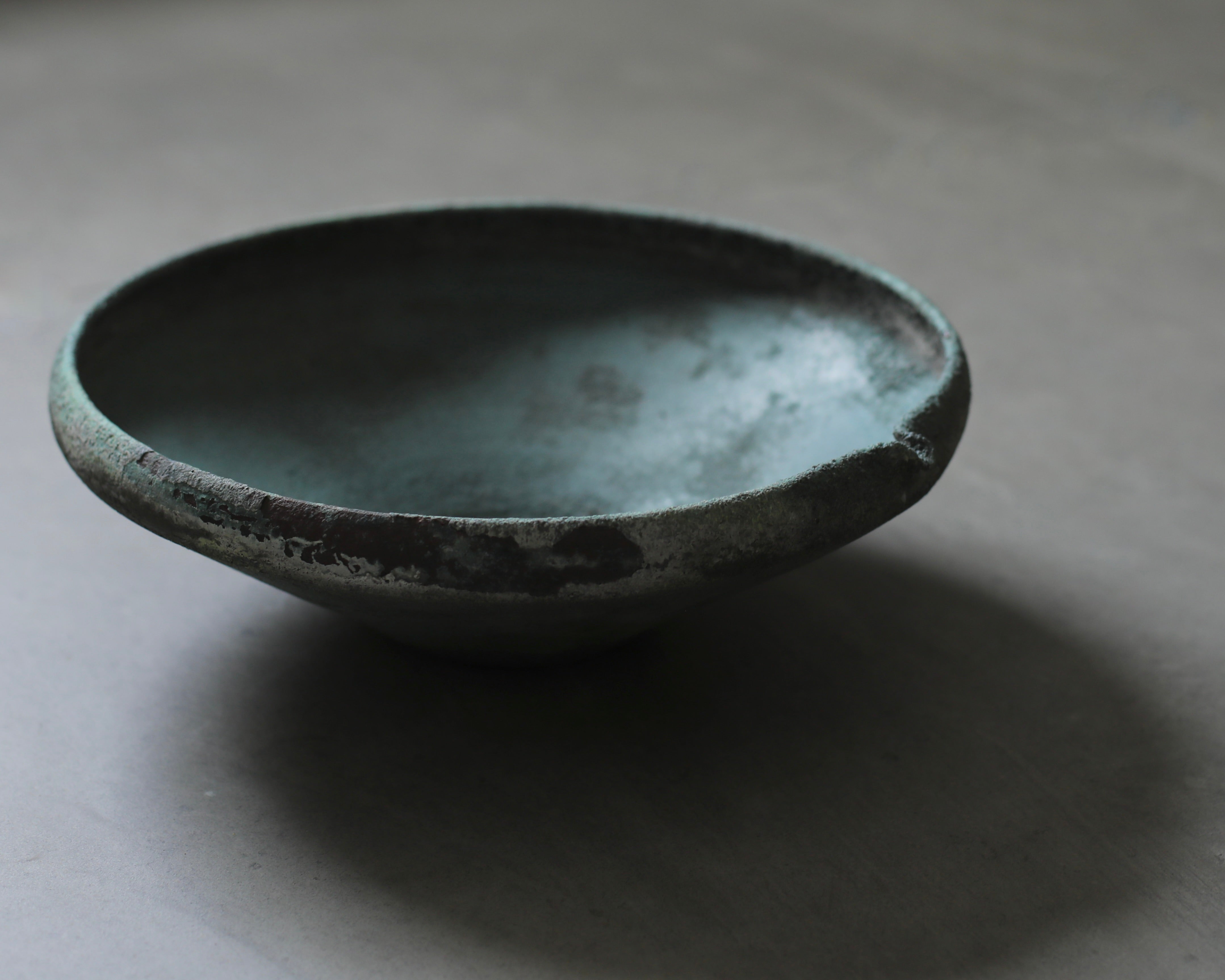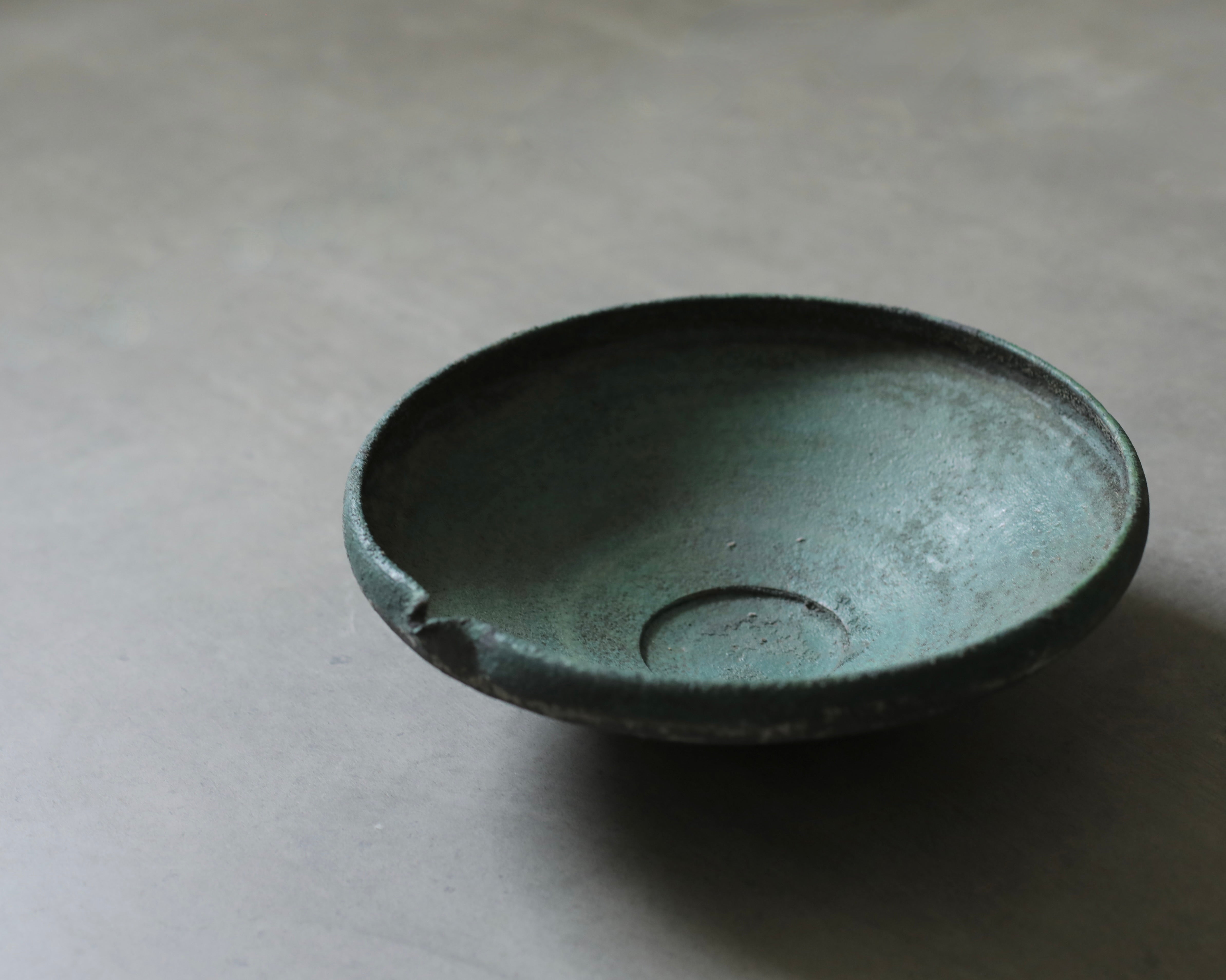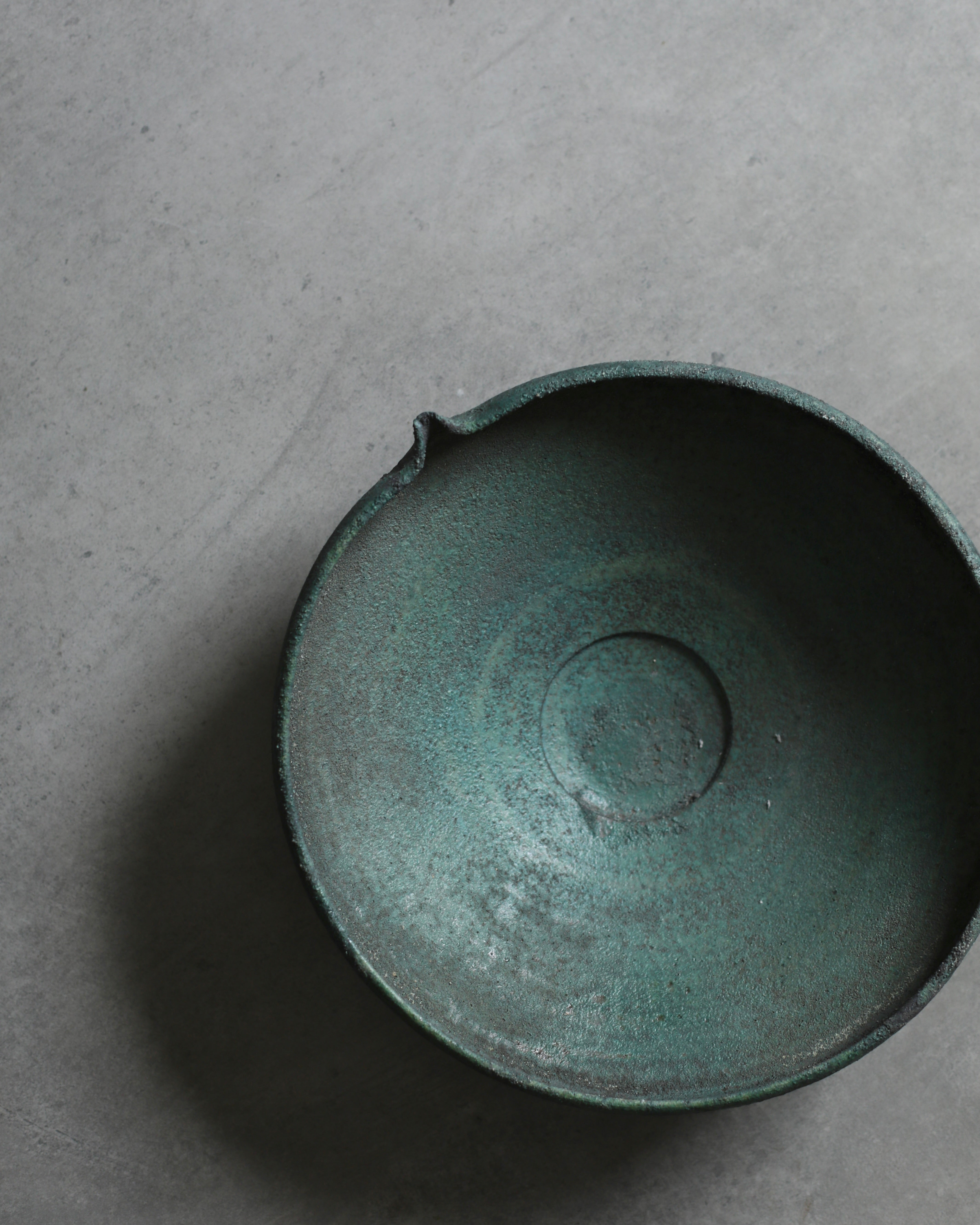 Noguchi's mastery of firewood kilns is particularly evident in his latest series, Verdigris Green. These dynamic, finely made pieces murmur through hues of chromium oxide to rich copper green. This hum of colour is echoed in the tactile moss-like surfaces he achieves by adding an accumulation of ash during the firing processes. The resulting works blur the line between contemporary pottery and historical artefacts, endowing them with an enigmatic beauty that leaves the origins of these pieces unclear, an ideal that Noguchi is seeking within his work.