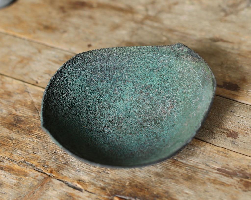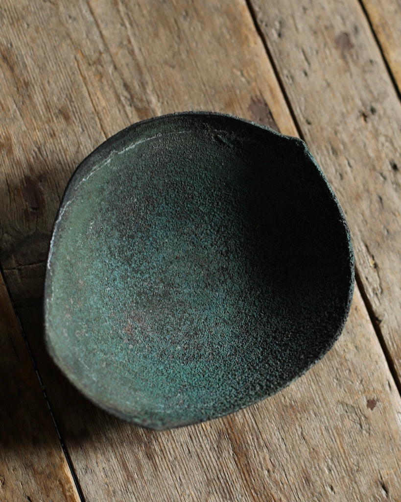 Noguchi's mastery of firewood kilns is particularly evident in his latest series, Verdigris Green. These dynamic, finely made pieces murmur through hues of chromium oxide to rich copper green. This hum of colour is echoed in the tactile moss-like surfaces he achieves by adding an accumulation of ash during the firing processes. The resulting works blur the line between contemporary pottery and historical artefacts, endowing them with an enigmatic beauty that leaves the origins of these pieces unclear, an ideal that Noguchi is seeking within his work.