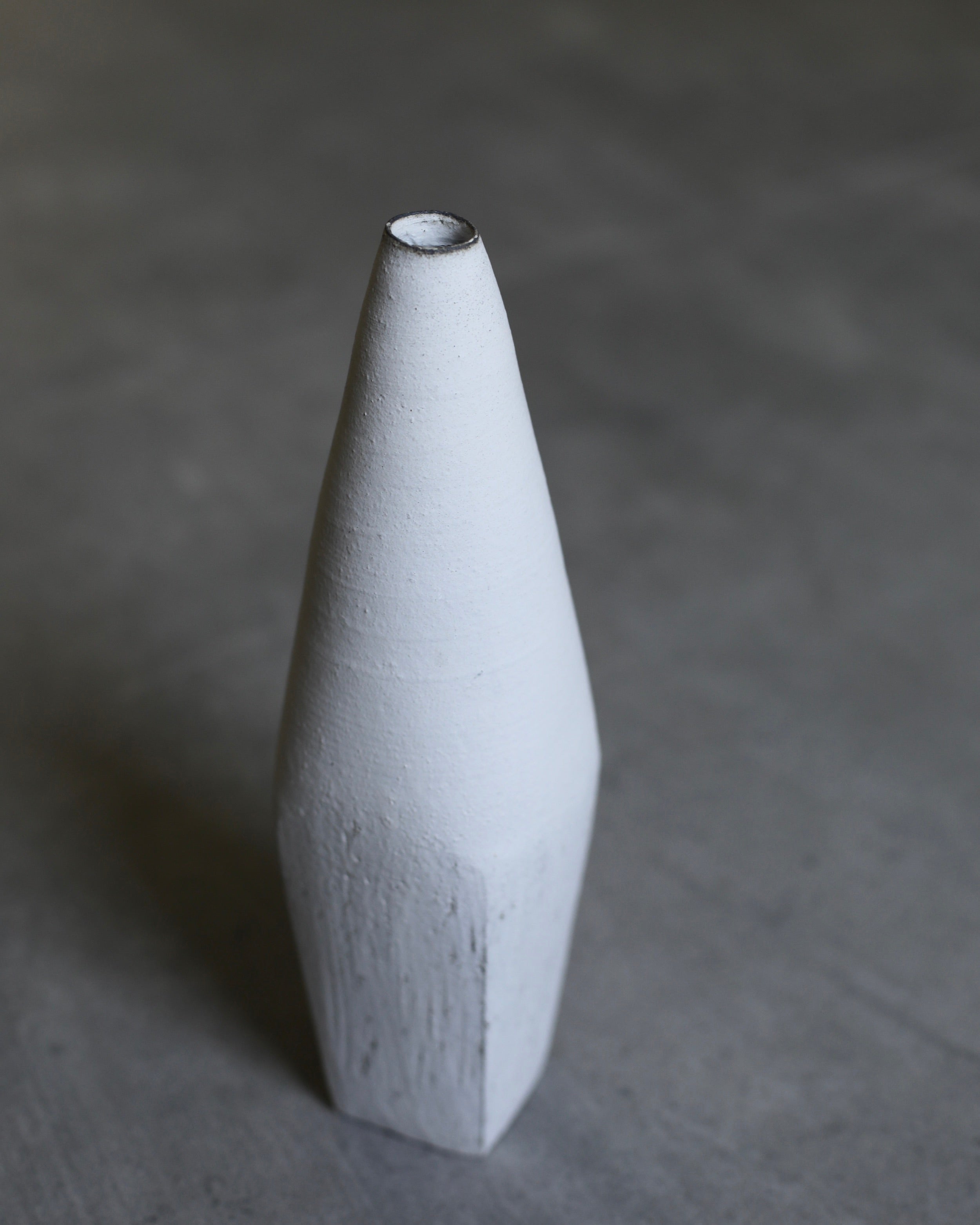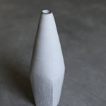 A square-shaped bottle hand-crafted by Etsuji Noguchi. The vase features a unique design, starting with a square-shaped base that gradually transitions into a rounded, slender upper body, culminating in a narrow opening at the top. This vessel is made from naturally sourced materials and has been exquisitely hand-turned before being fired in a textured lichen-like glaze.