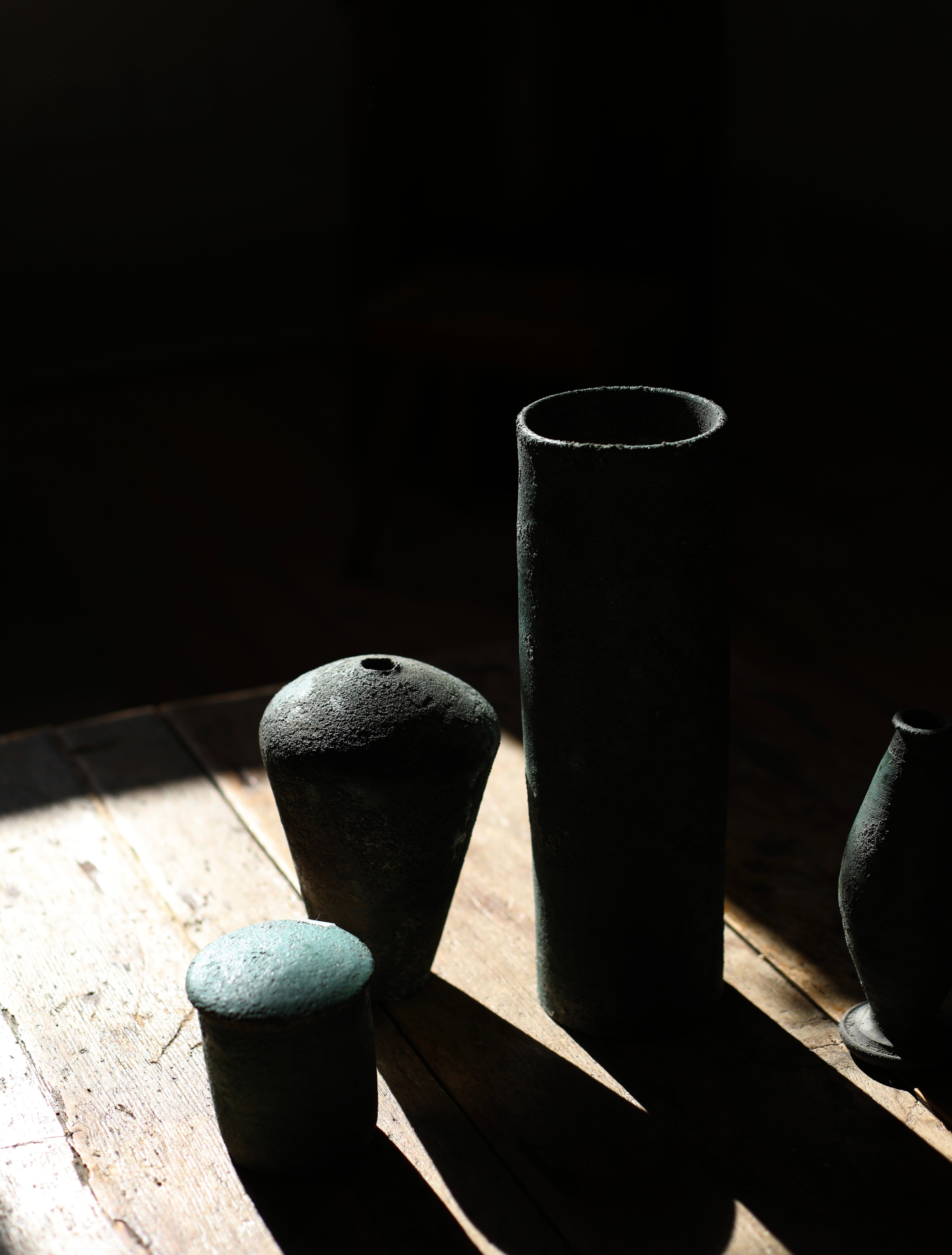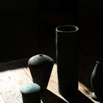 Noguchi's mastery of firewood kilns is particularly evident in his latest series, Verdigris Green. These dynamic, finely made pieces murmur through hues of chromium oxide to rich copper green. This hum of colour is echoed in the tactile moss-like surfaces he achieves by adding an accumulation of ash during the firing processes. The resulting works blur the line between contemporary pottery and historical artefacts, endowing them with an enigmatic beauty that leaves the origins of these pieces unclear, an ideal that Noguchi is seeking within his work.