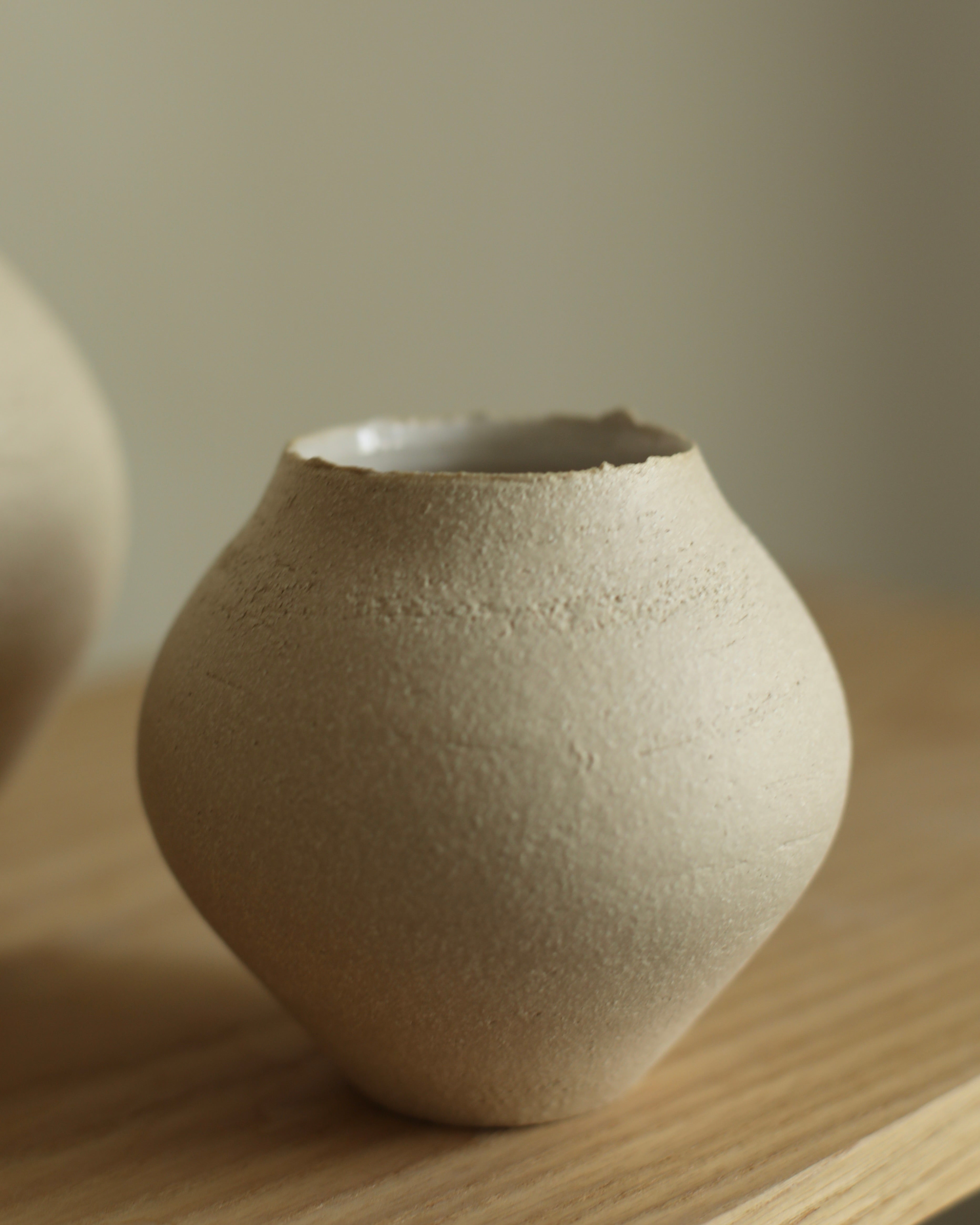 'Extra small stoneware vessel with a bare exterior and a white glaze interior' 2