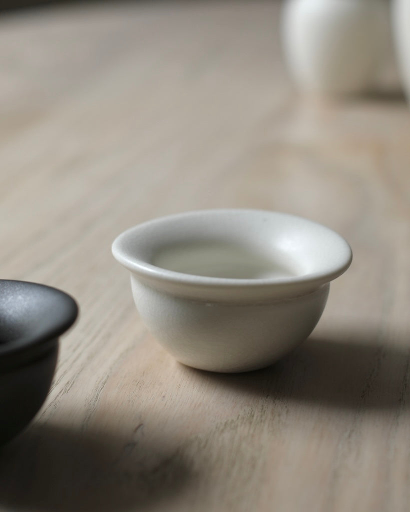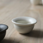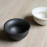 Elegant and understated, these hand-thrown porcelain pinch pots combine sculptural form with everyday functionality. Each piece features a soft, fluid shape that curves inward, creating a tactile and visually balanced design. The satin-white exterior contrasts beautifully with the glossy, dark-glazed interior, giving depth and character to the surface.