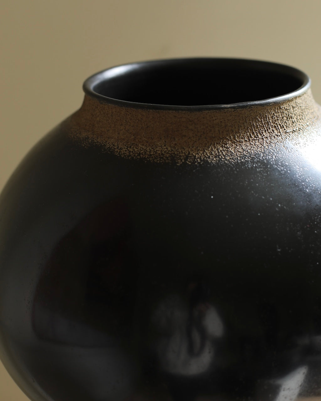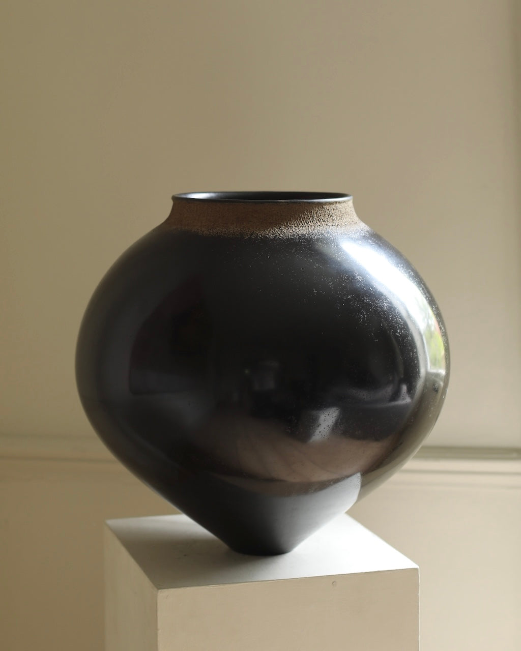 Indicative of the Wabi Sabi aesthetic, this Moon Jar was crafted during a contemplative process, during which Anzai employs a slow craftmaking rhythm. His deliberate approach is dictated by the process of making – firstly carefully layering porcelain, then continuously sandpapering, polishing, and, finally, refining. The soft shape of the vessel embodies the tranquillity that emits from Anzai’s works, while the deep earthy tones embody strength. The subtle dialogue between the delicate shapes and rich tones evokes a serene energy, that invites the viewer for a meditative glance, that focuses on intricate details. By infusing glaze with urushi, a traditional Japanese lacquer derived from the sap of a lacquer tree, Anzai used his perfected skills in ceramics to create an exceptional piece, that is the epitome of perfect balance.
