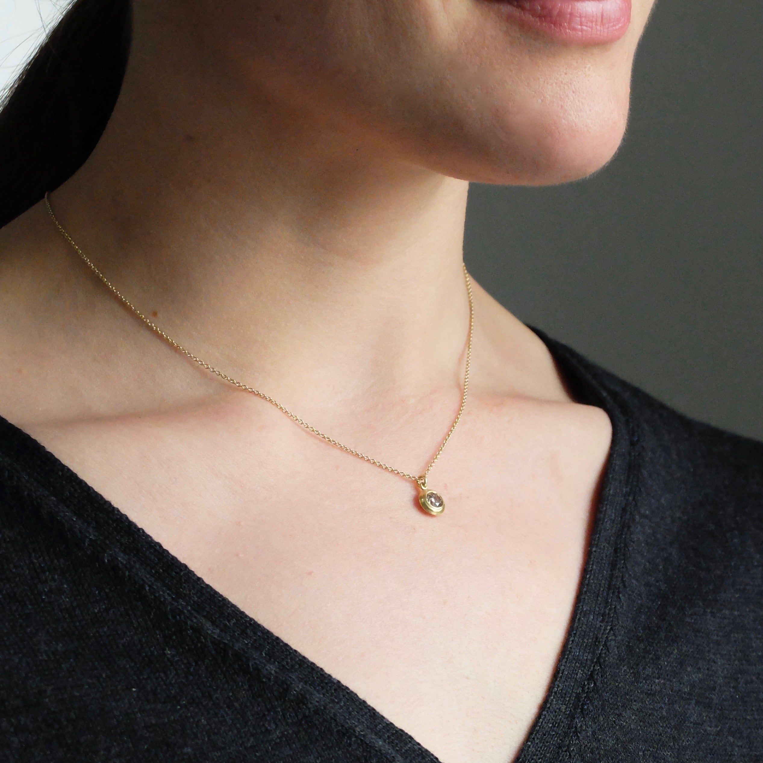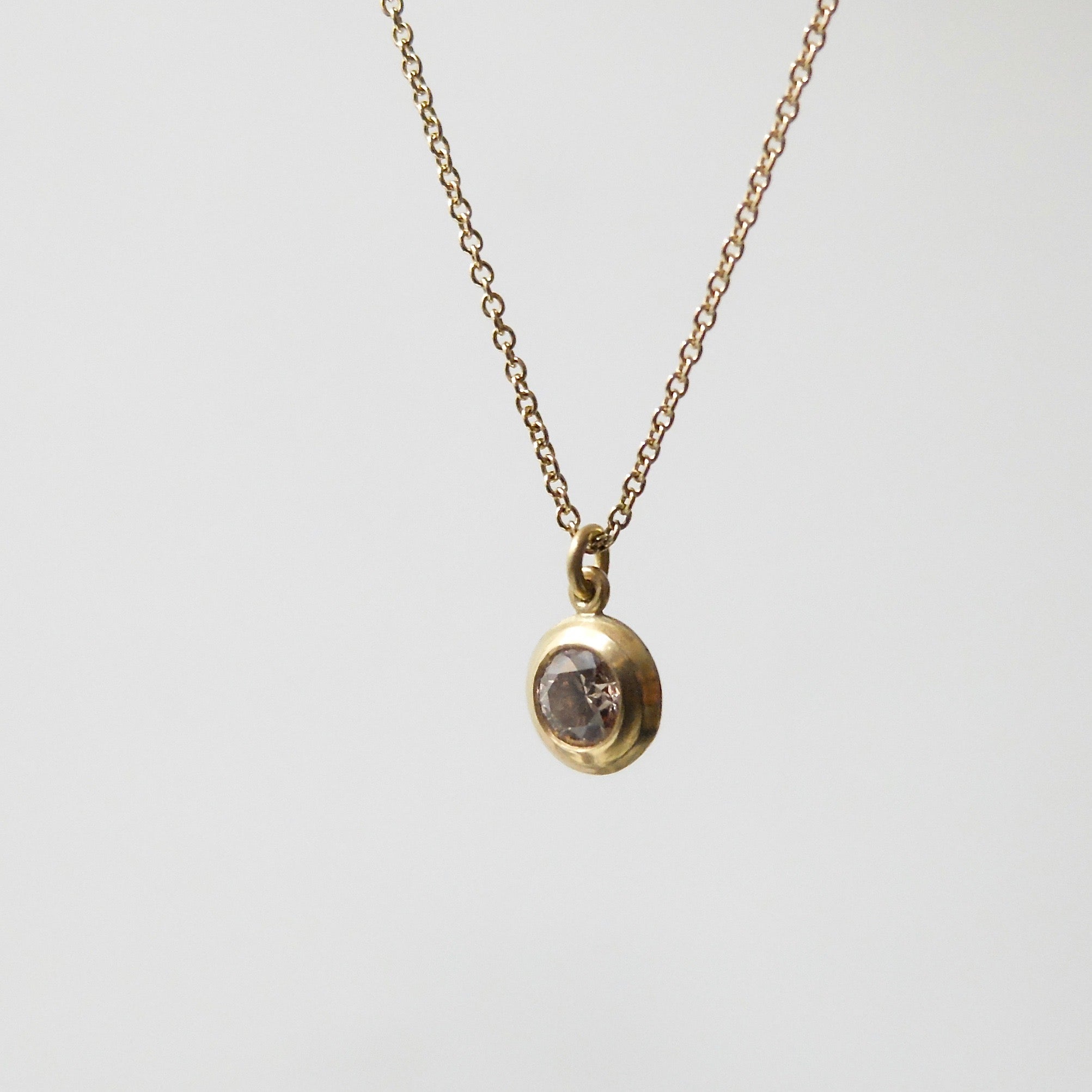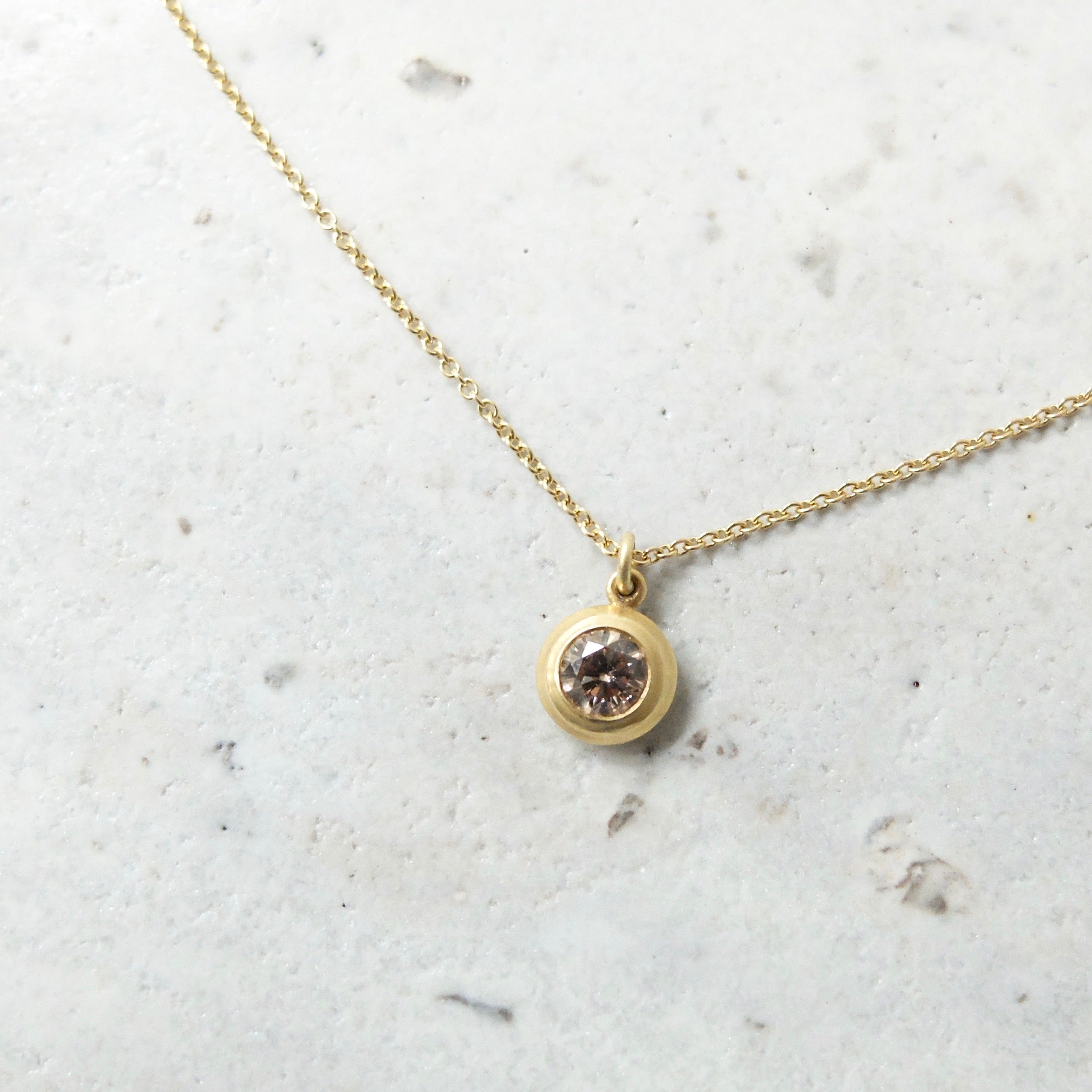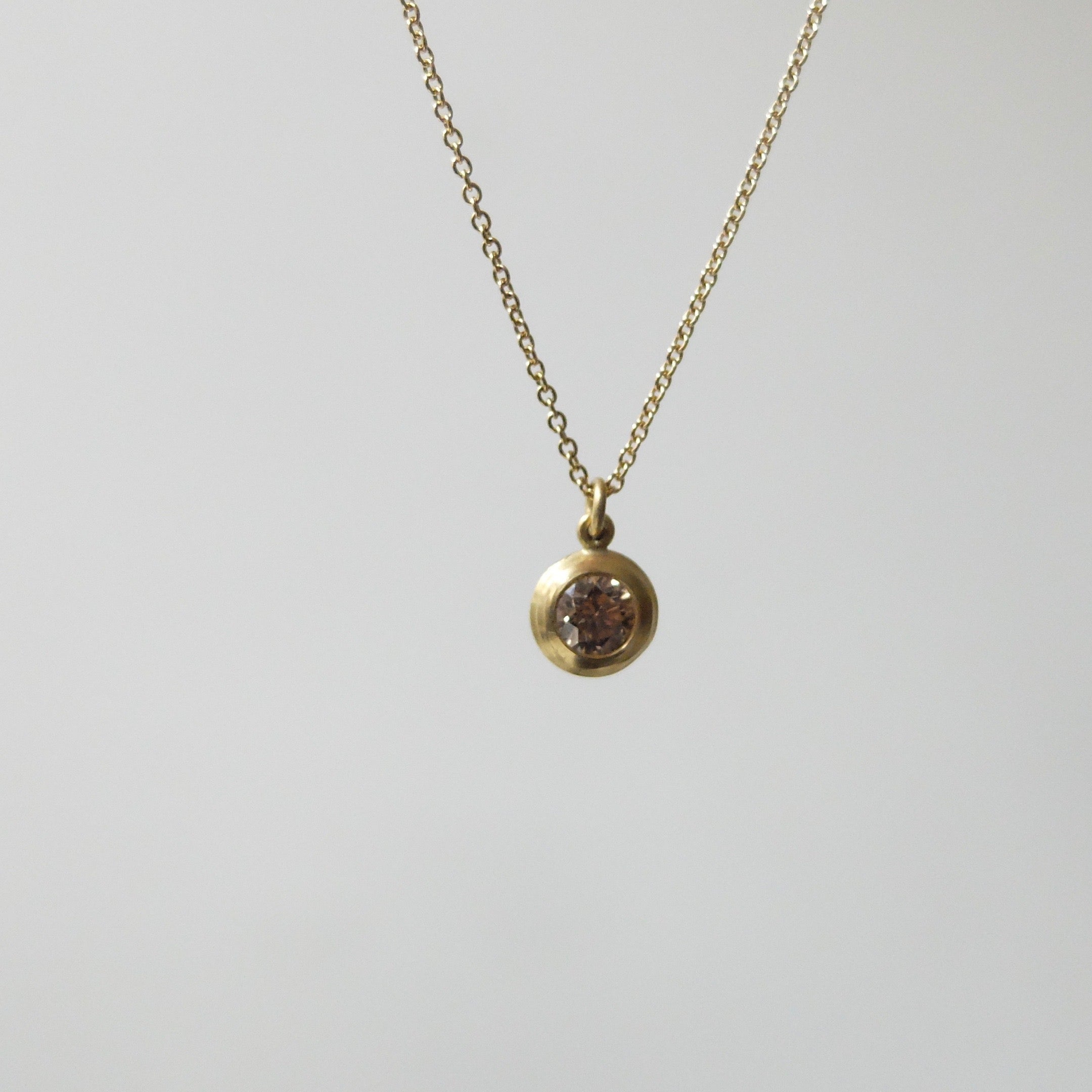 Stunning brown diamond on 40cm thin 18ct yellow gold chain with bar and ring clasp. The perfect balance of simplicity and delicacy.