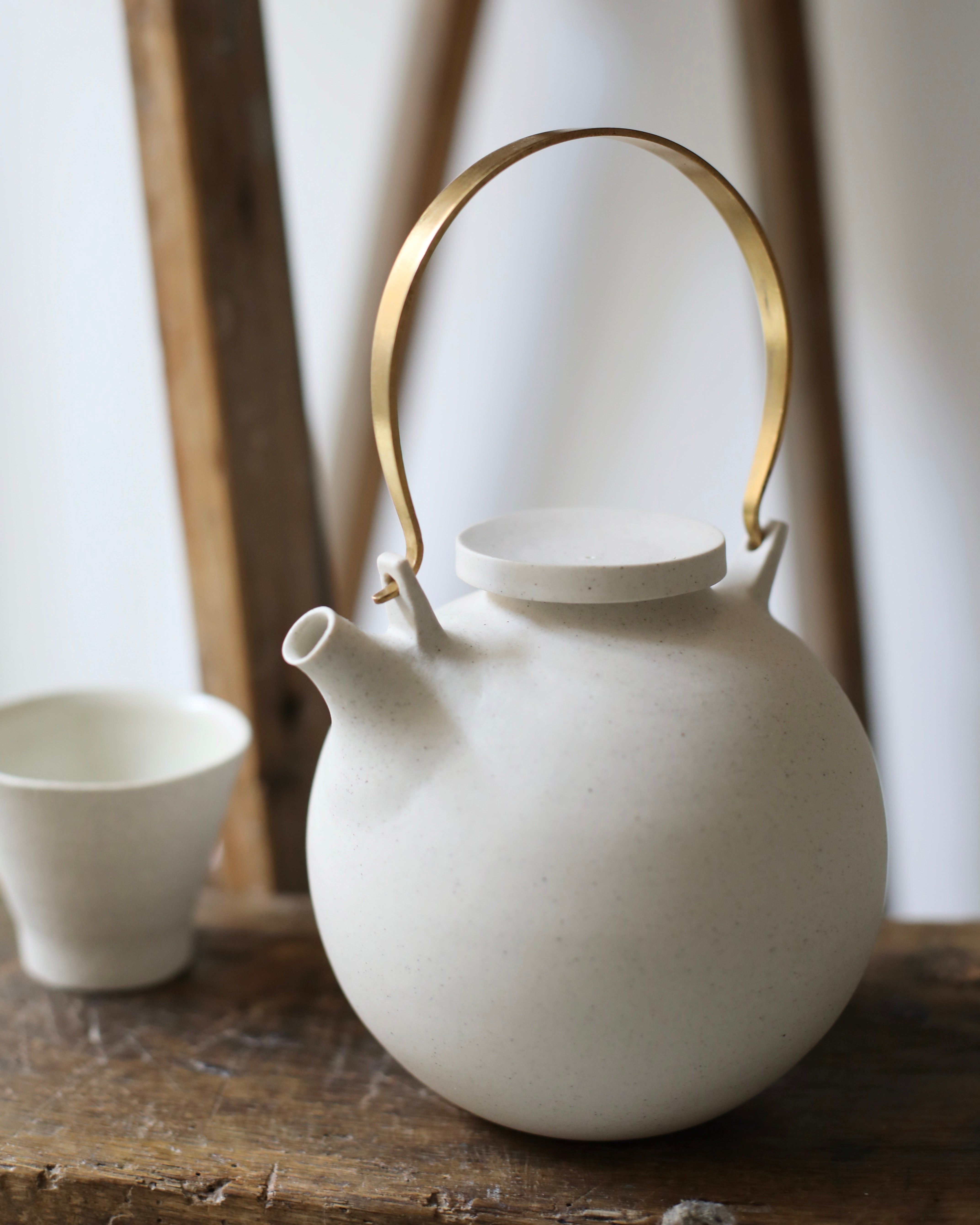 Crafted from a blend of porcelain and stoneware, these teapots feature a subtle unglazed finish that reveals a soft, off-white tone. The smooth, tactile surface invites touch, while the combination of materials offers both durability and refined elegance. This delicate balance of textures makes each teapot not only a functional piece but also a beautiful addition to any tea ceremony or daily ritual.