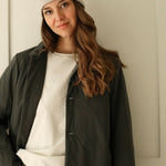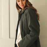 The forest green shade introduces a rich, earthy tone that brings depth and warmth to this easy outer layer, pairing effortlessly with both neutrals and seasonal colours.