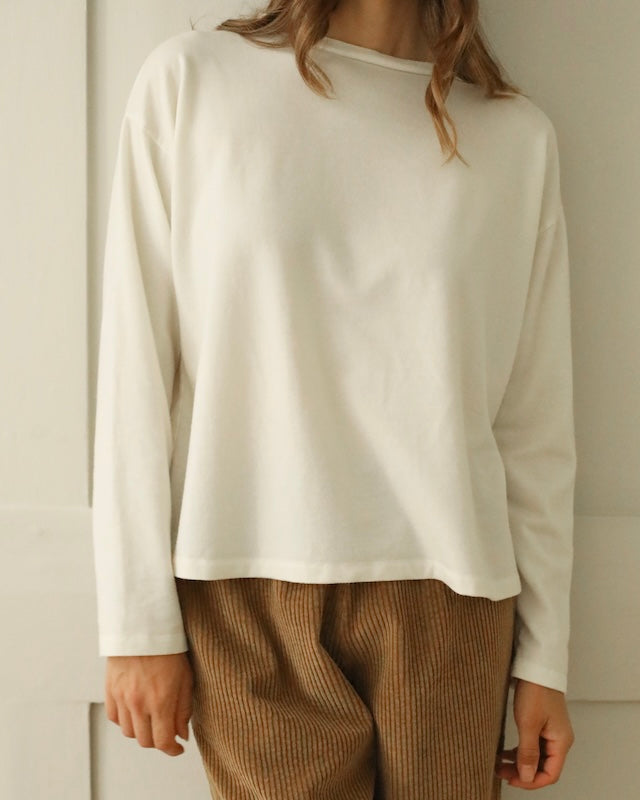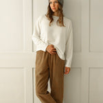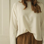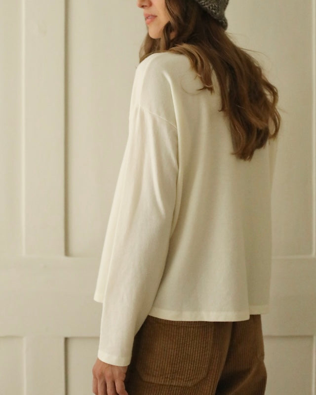 Presented in a warm ‘winter white’ shade, this piece brings a comforting and cozy warmth to your wardrobe, perfect for layering or wearing alone throughout the colder months.