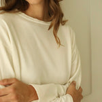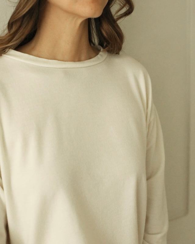 The Maglia Lola is a boxy long-sleeve top designed for effortless comfort and style. Crafted from a soft blend of wool and elastane, it offers a gentle stretch and a luxuriously soft feel against the skin.