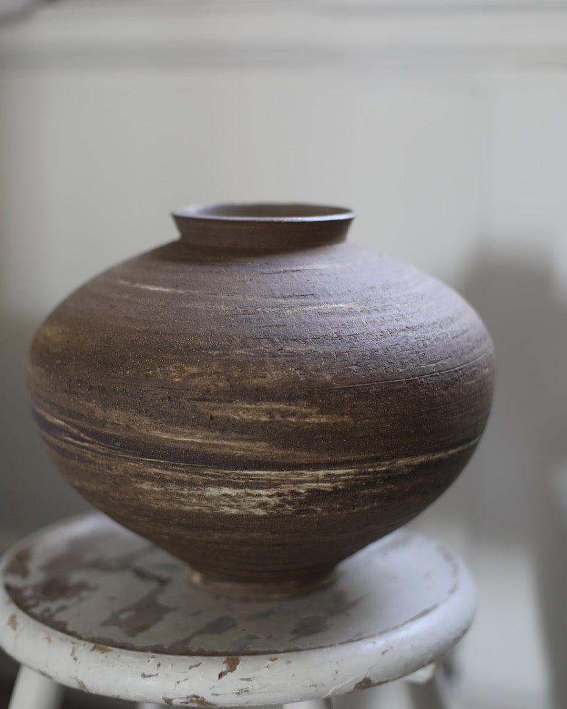 "Ever since I saw a moon jar in Japan I´ve marveled at the skill that goes into making these; the calm, strong expression they possess is impressive. Also, the fact that they are made in two pieces and then assembled add to the complexity of making the jar. Though I´m highly influenced by the Japanese tradition, I´m aware of my Scandinavian inheritance. Making a moon jar is infused with old traditions and symbols; some I might not grasp the full depth of – but I do hope that the sincere love of form shines through in my pieces, and that they too convey calm and strength. That´s what I´ve been aiming for in shaping my jars."