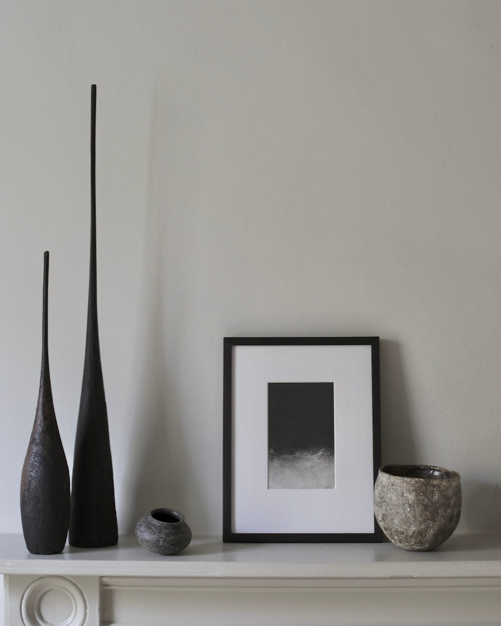 Method: Turned on a lathe and hand carved, the pieces are burnt using fire and compressed air. A compound with an iron base is then added and the pieces are finished using a combination of artist's fixatives, spray varnishes and beeswax and then left outside in the sun for at least 2-3 weeks