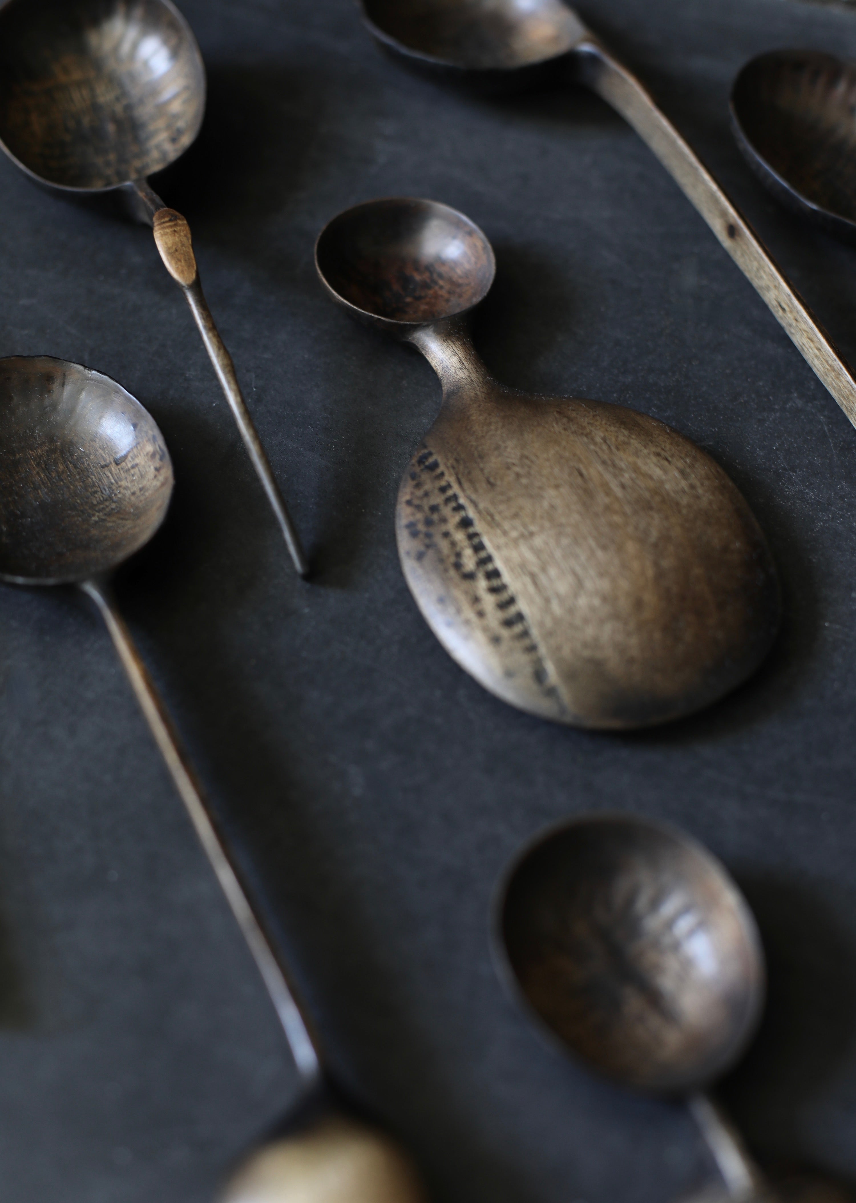 Care: Treat the spoons with a drop of linseed oil, polish with for instance greaseproof paper for a shiny surface. Do not wash in the dishwasher