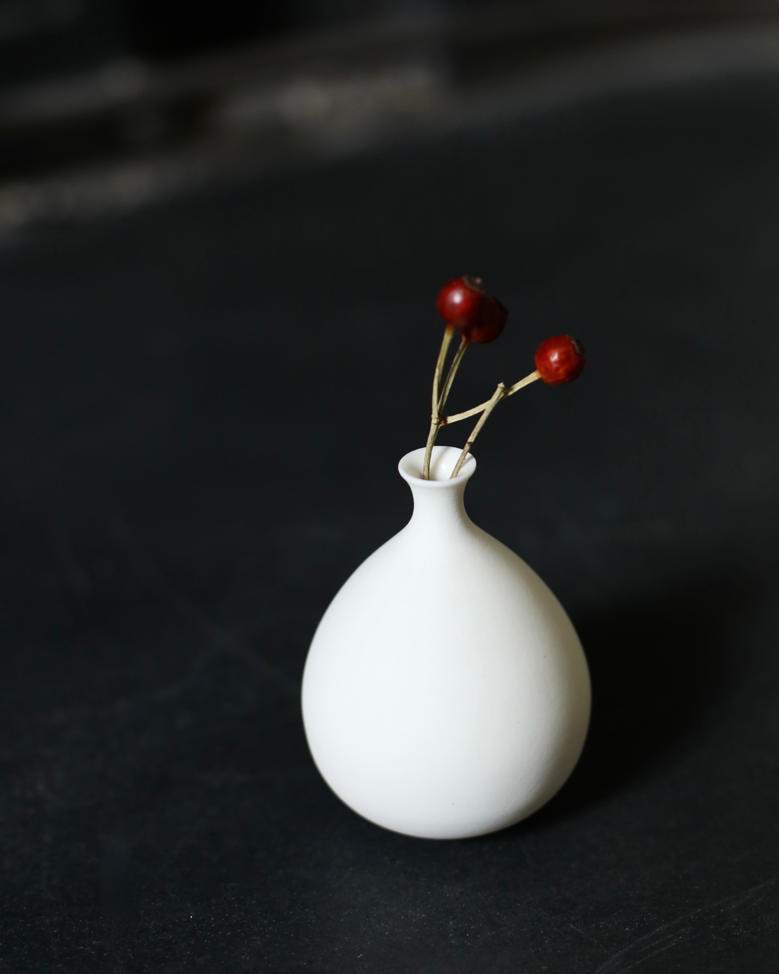 Hand thrown on the wheel Masako's beautiful small nest vase's have a smooth surface, created by mixing glaze into porcelain and polishing. Inspired by nature and the movements within it each piece is then hand carved with soft lines, giving them unique yet subtle character.
