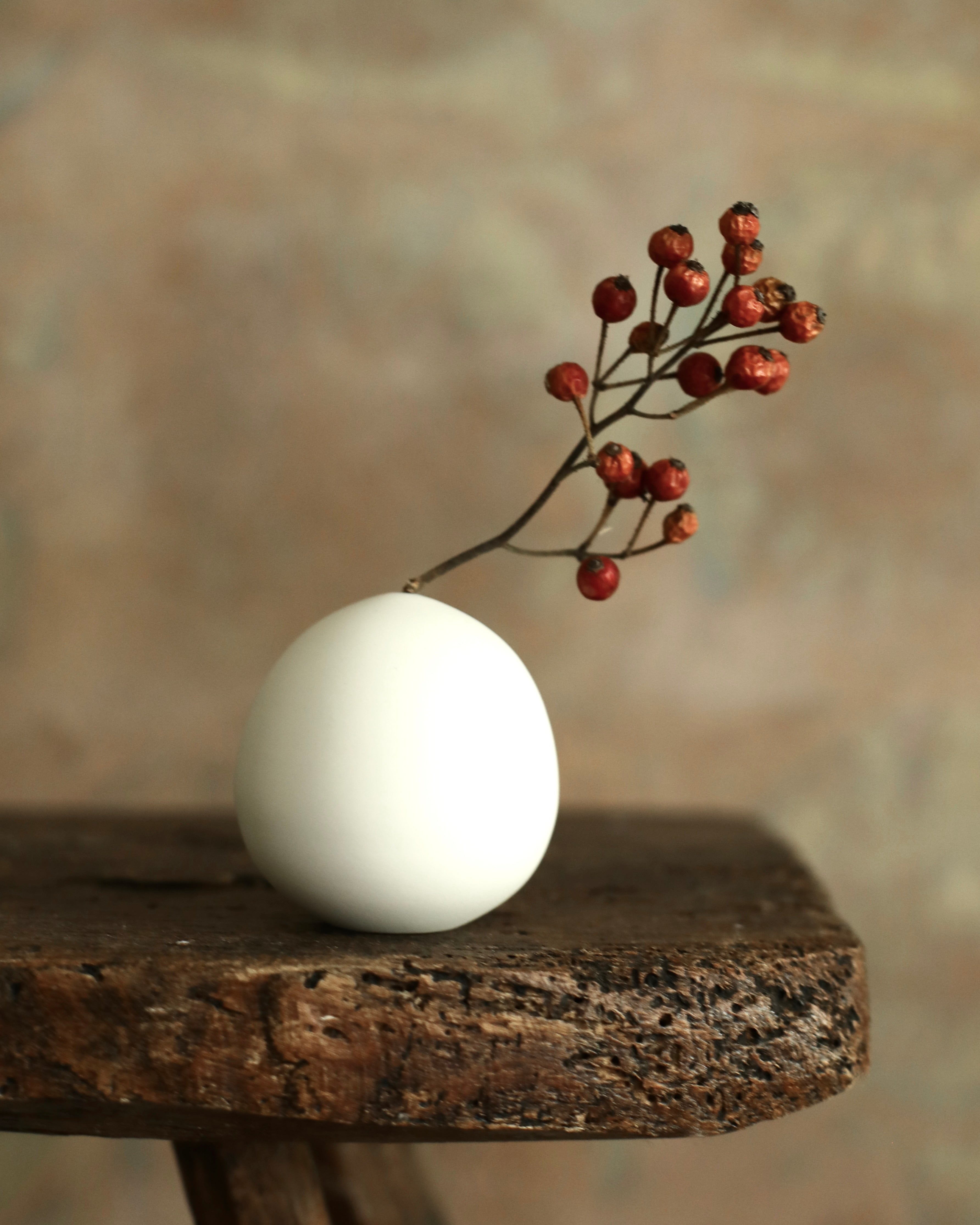 Hand thrown on the wheel Masako's beautiful small nest vase's have a smooth surface, created by mixing glaze into porcelain and polishing. Inspired by nature and the movements within it each piece is then hand carved with soft lines, giving them unique yet subtle character.